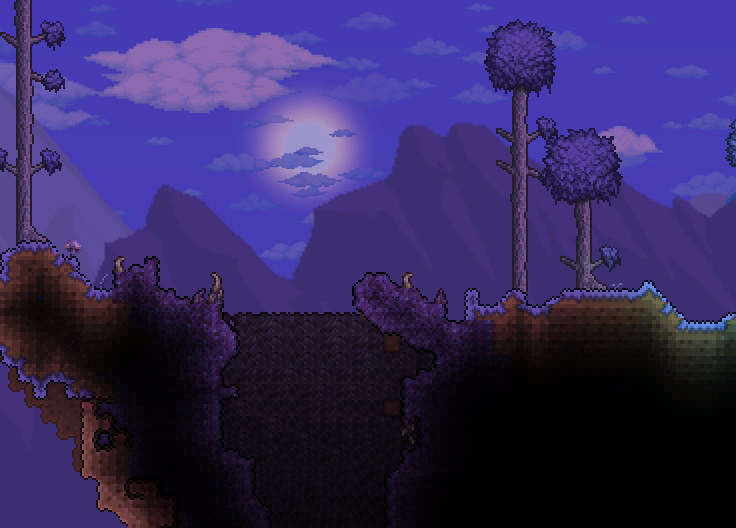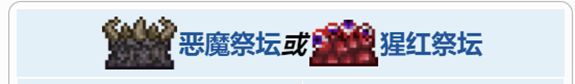 腐化对应恶魔祭坛和猩红对应猩红祭坛,它们可用于合成boss召唤物或是某些特殊物品,在困难模式可以被神锤破坏,破坏后世界会被赋予新的矿物,这些矿物可以合成新的物品和装备。