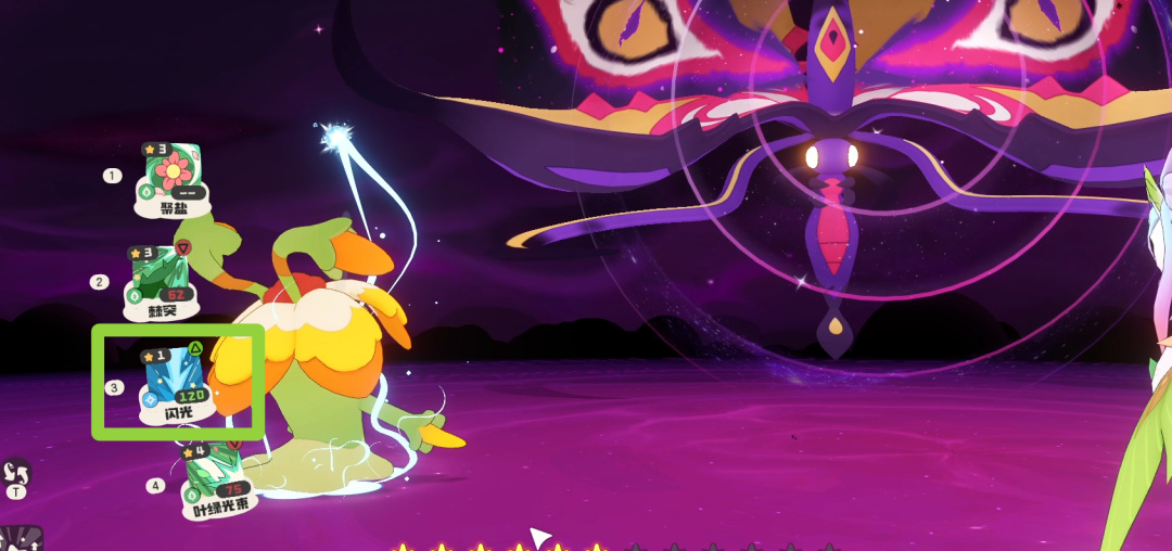 第三回合,依舊是選擇右下角的揹包,選擇道具,點擊左側的奇麗花。