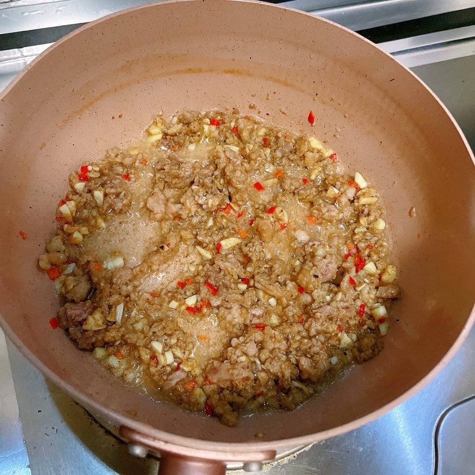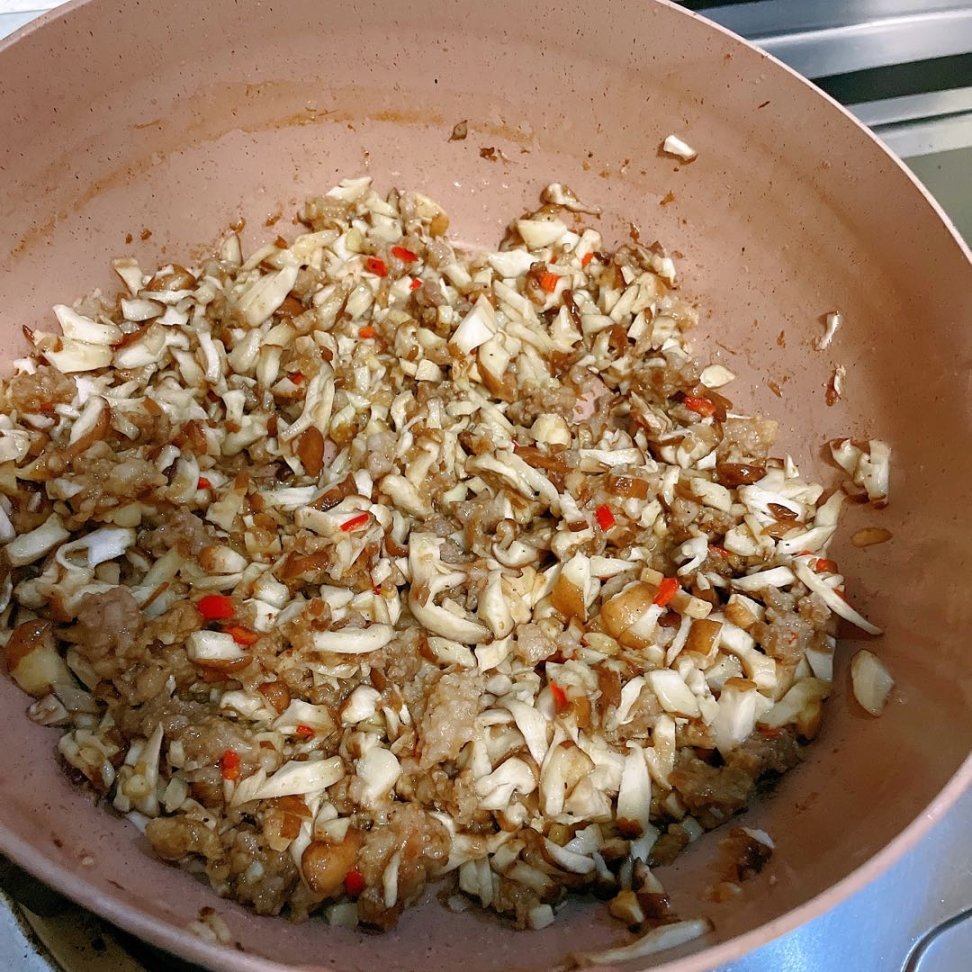 食材:肉末、香菇、小米辣、蒜 有條件的可以準備點蔥花香菜
