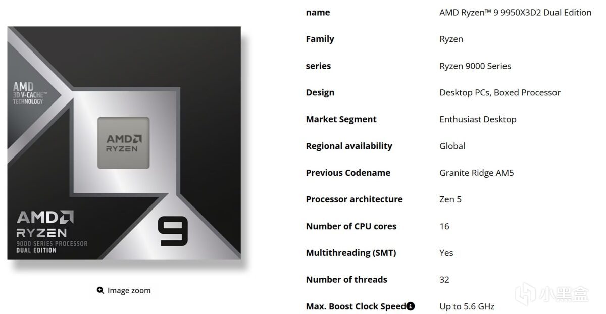 处理器基准频率 4.30GHz,最高加速频率 5.60GHz—— 比 9950X3D 低 100MHz,与 9850X3D 频率一致;目前暂未公布两颗 CCD 的频率是否完全相同。