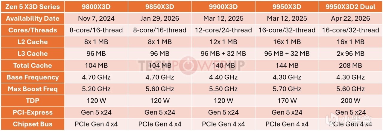 AMD 暂未公布售价,仅确认锐龙 9 9950X3D2 双版将于 2026 年 4 月 22 日正式上市。