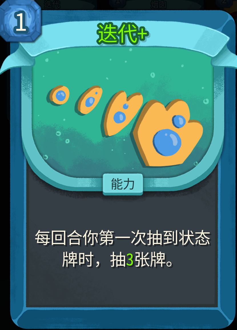 每回合第一次抽到状态牌就会抽3张牌,体系成型之后,很容易触发,触发一次手上就有8张牌了。可惜一回合只能触发一次,不过已经完全够用了。