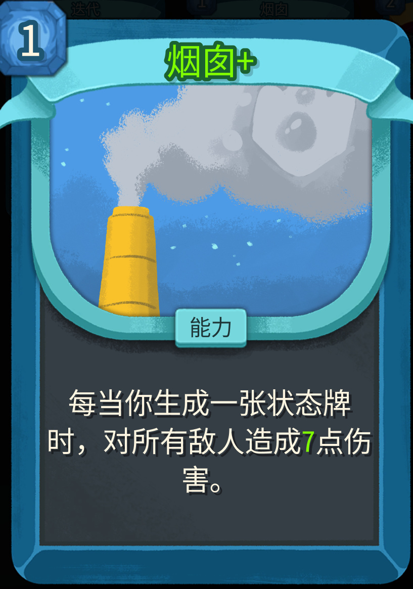 这张卡设计的很贴合状态体系,第一次看到烟囱里面冒出的烟都是鸡煲的形状,小二真的笑了。效果生成状态卡,会对所有造成5/7点伤害,补足鸡煲AOE输出端,这一代群体怪真的多,值得投入卡位。