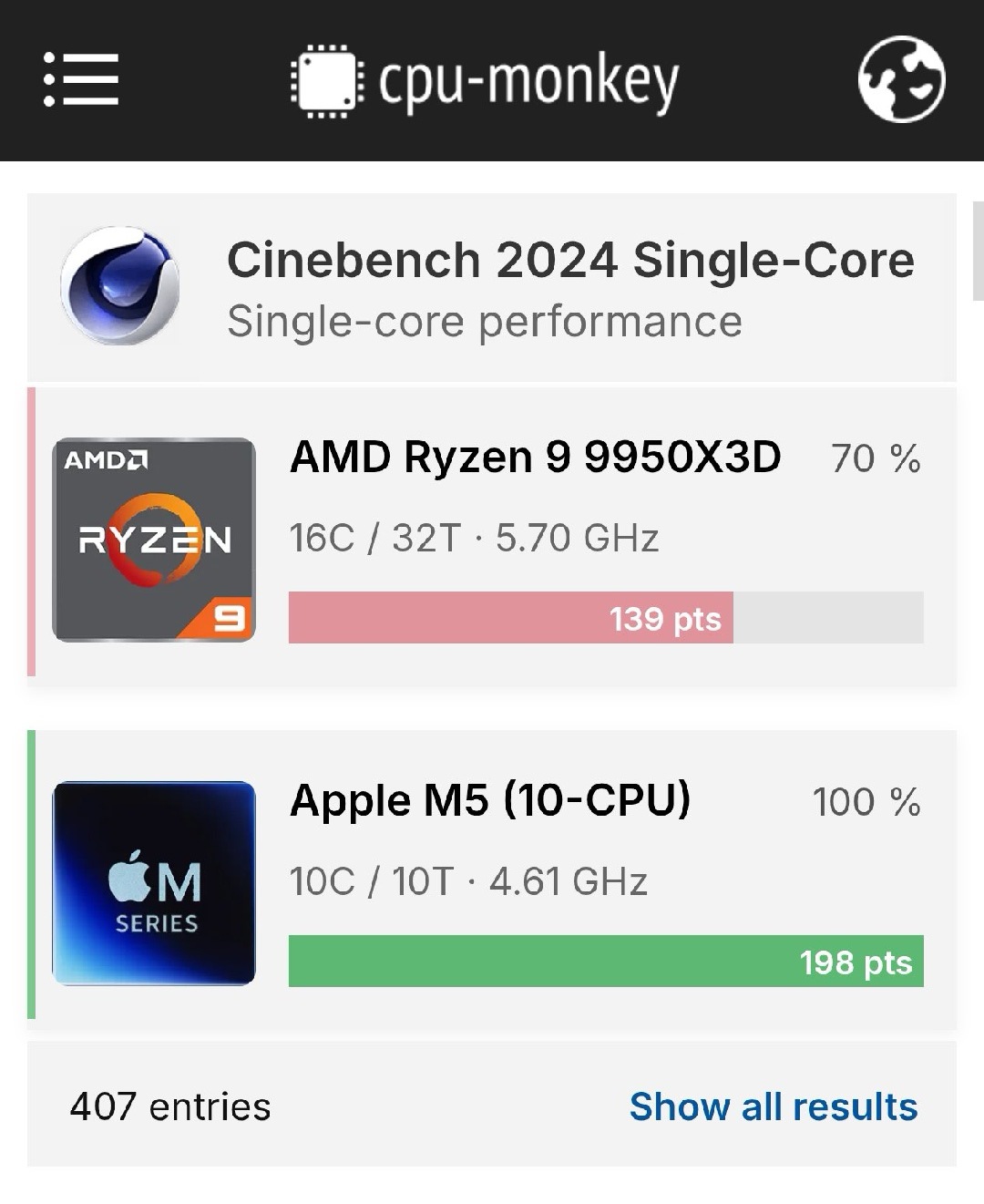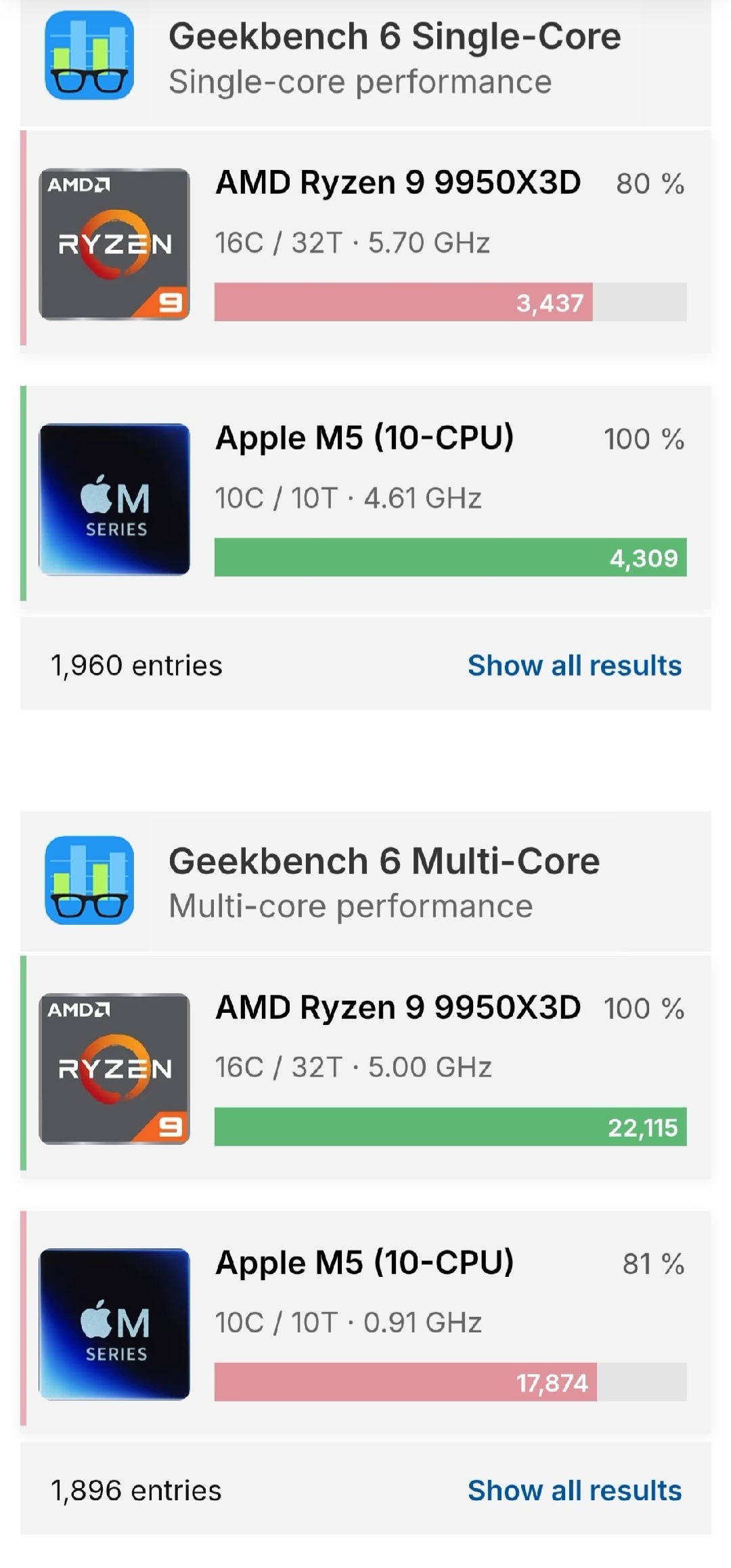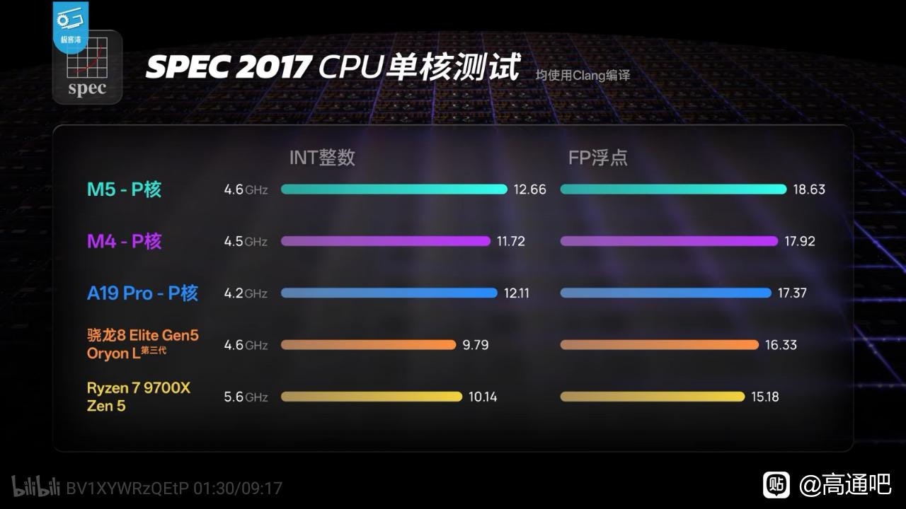 CPU微架构从拉完了到夯,综合这几年来的,9700x 88瓦水平不超过8e5 22瓦,考虑到一个手机蜗居壳里做道场,一个电脑随便双塔风冷伺候,同样22瓦的电脑arm架构芯片m5单核远超9950x3d(图二,图三)