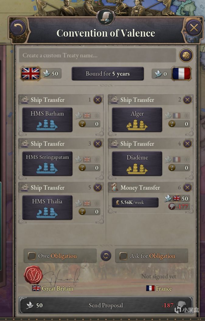 这样一来,你就可以购买任意数量的船舰了。如其他条约一样,你可以添加其他条款,比如资金转让或是投资权等。