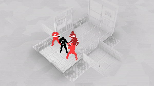 游戏采用黑白灰为主色调,只有迸溅的鲜血是醒目的红色。这种极简配色有双重功能:一是功能性的,在高密度的网格地图上,色彩越简单,玩家越容易快速识别敌我位置、攻击范围和障碍物;二是叙事性的,它让人想起《罪恶之城》的漫画美学——黑白世界里,红色成为暴力的提纯符号。