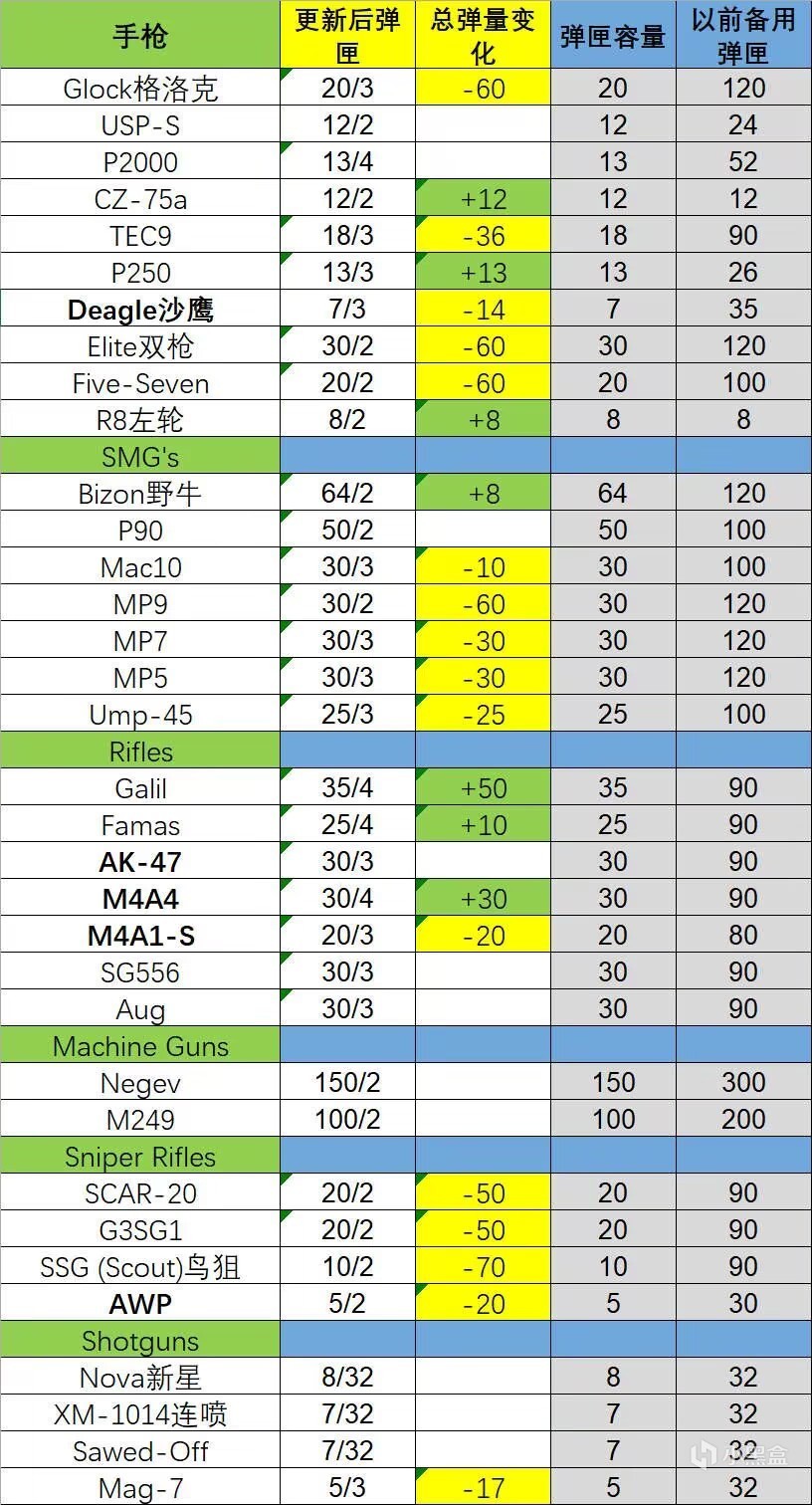 因此,CS2對換彈機制的調整,是爲了適應新的道具,以及可能隨之產生的新戰術,具體改動如下圖: