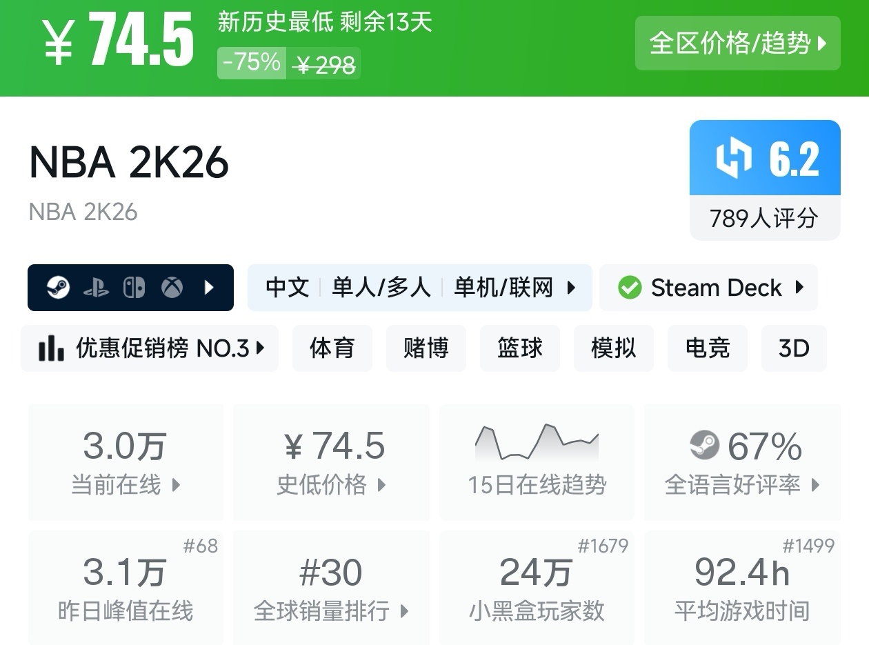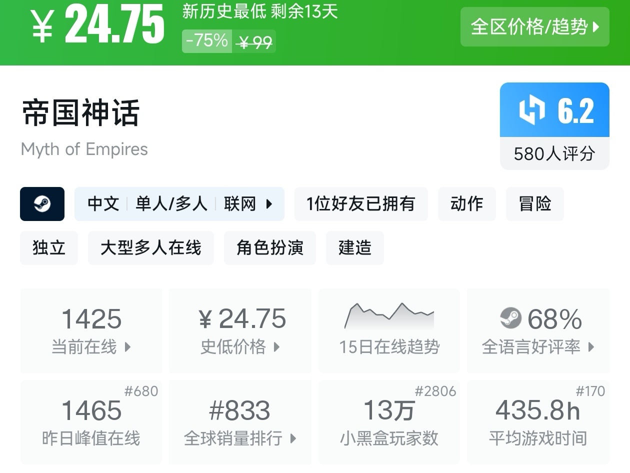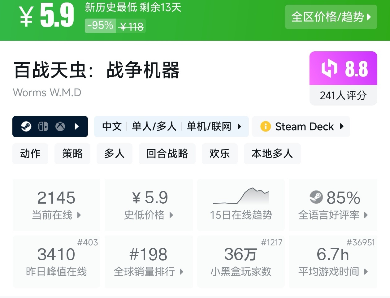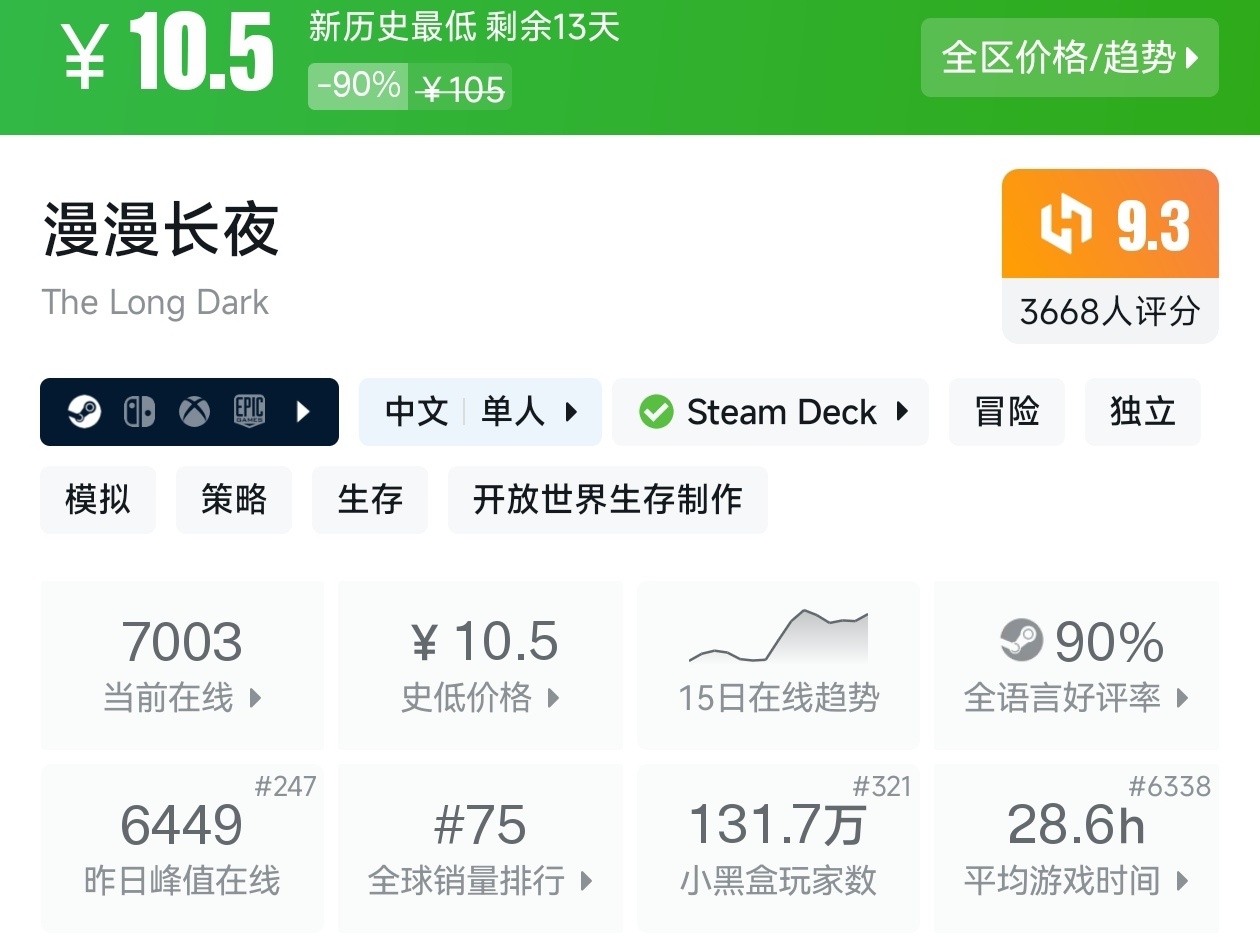 大家好,没错,又是我,你们的老朋友亦然,今天,春促就结束了,当然,有些盒友都不用担心,虽然春促结束,但仍然有很多游戏最近还在折扣,其中就有很多新史低,其实新史低的游戏买起来最有安全感,在很长一段时间都不会更低,我将为各位进行一个汇总,希望我的汇总,能够帮助各位盒友挑选心仪的游戏。