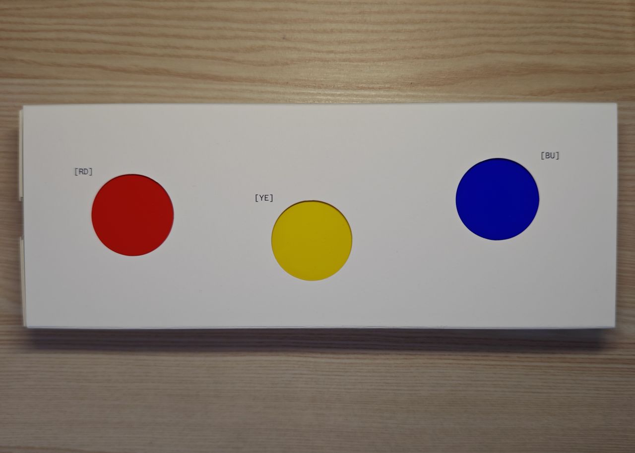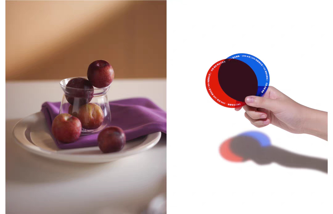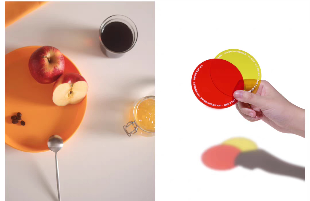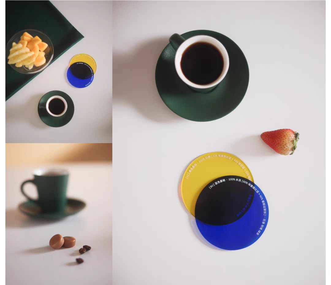 打開外包裝,映入眼簾的就是三塊亞克力板,這也是這套豆子的主題——三原色。再往下翻便能看到一張小小的說明書,上面寫好了七種顏色,分別對應着不同的風味描述,其中四個顏色並不能直接得到,需要自己“拼配”,這也是這套豆子的有趣之處——自主拼配。三塊顏色不同的亞克力板,經過不同方式的疊放,陽光下得到不同的顏色,這就是“光的拼配”。