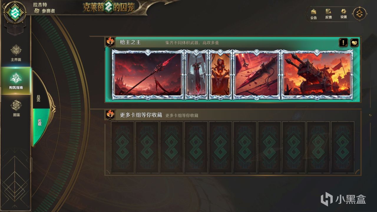 玩家可以在構築指南中瀏覽目前收錄的推薦卡組。卡組右上角提供了構築預覽與收藏功能,看到心儀的配置隨手收藏,方便隨時回顧。