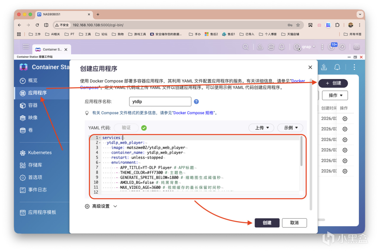 以威联通NAS为例,通过Docker Compose的方式进行部署。