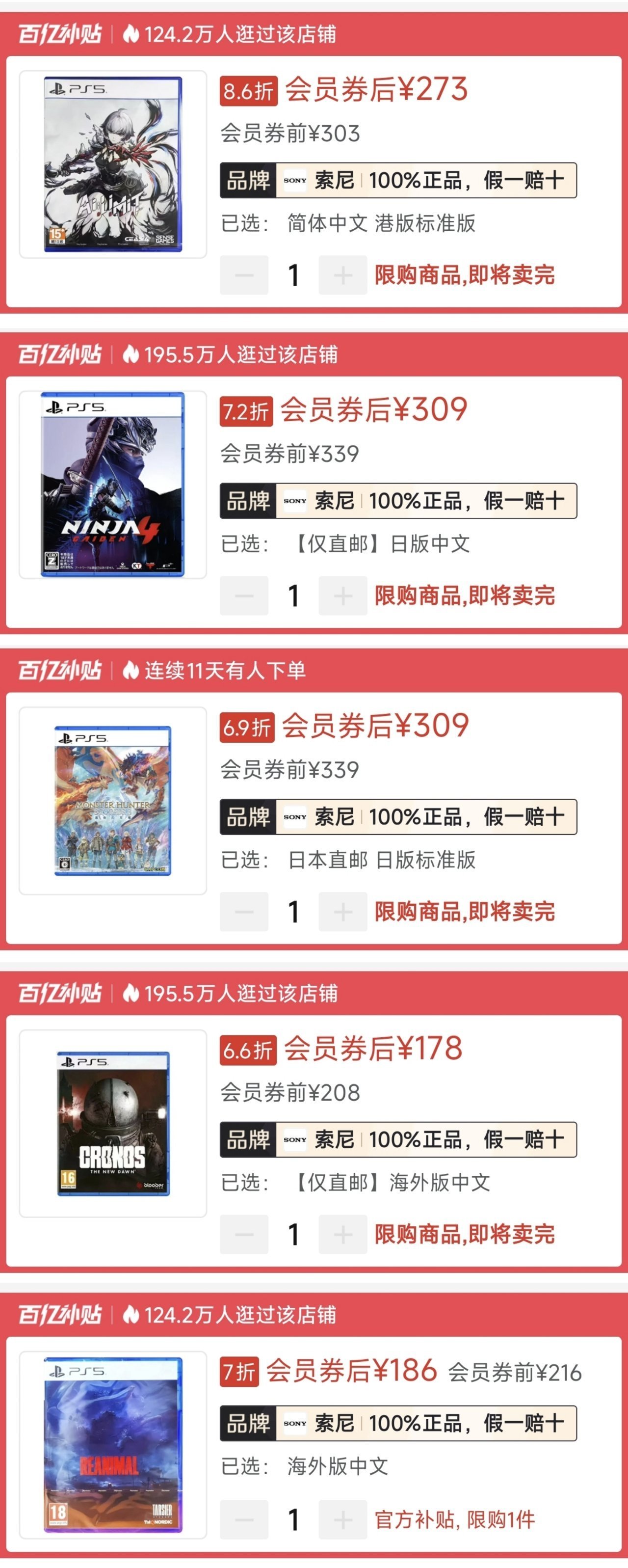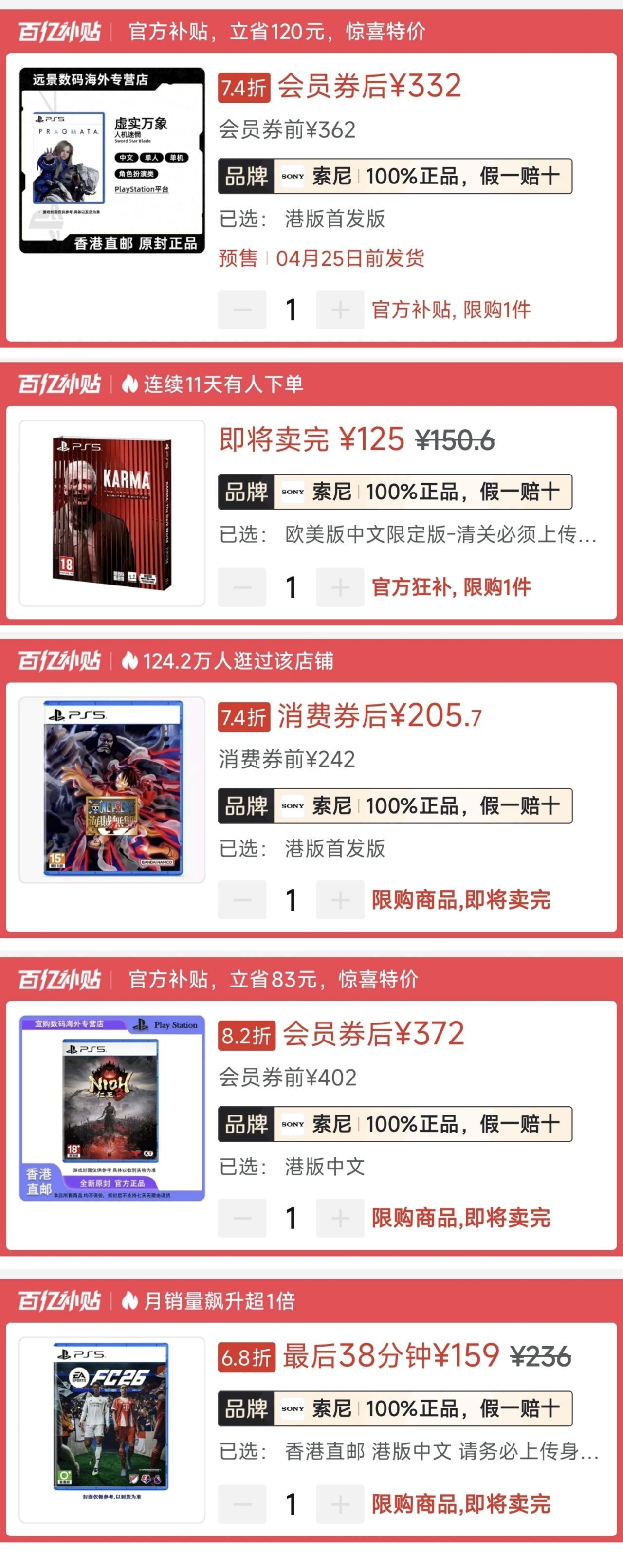 1.《仁王3》🇭🇰352(-50)