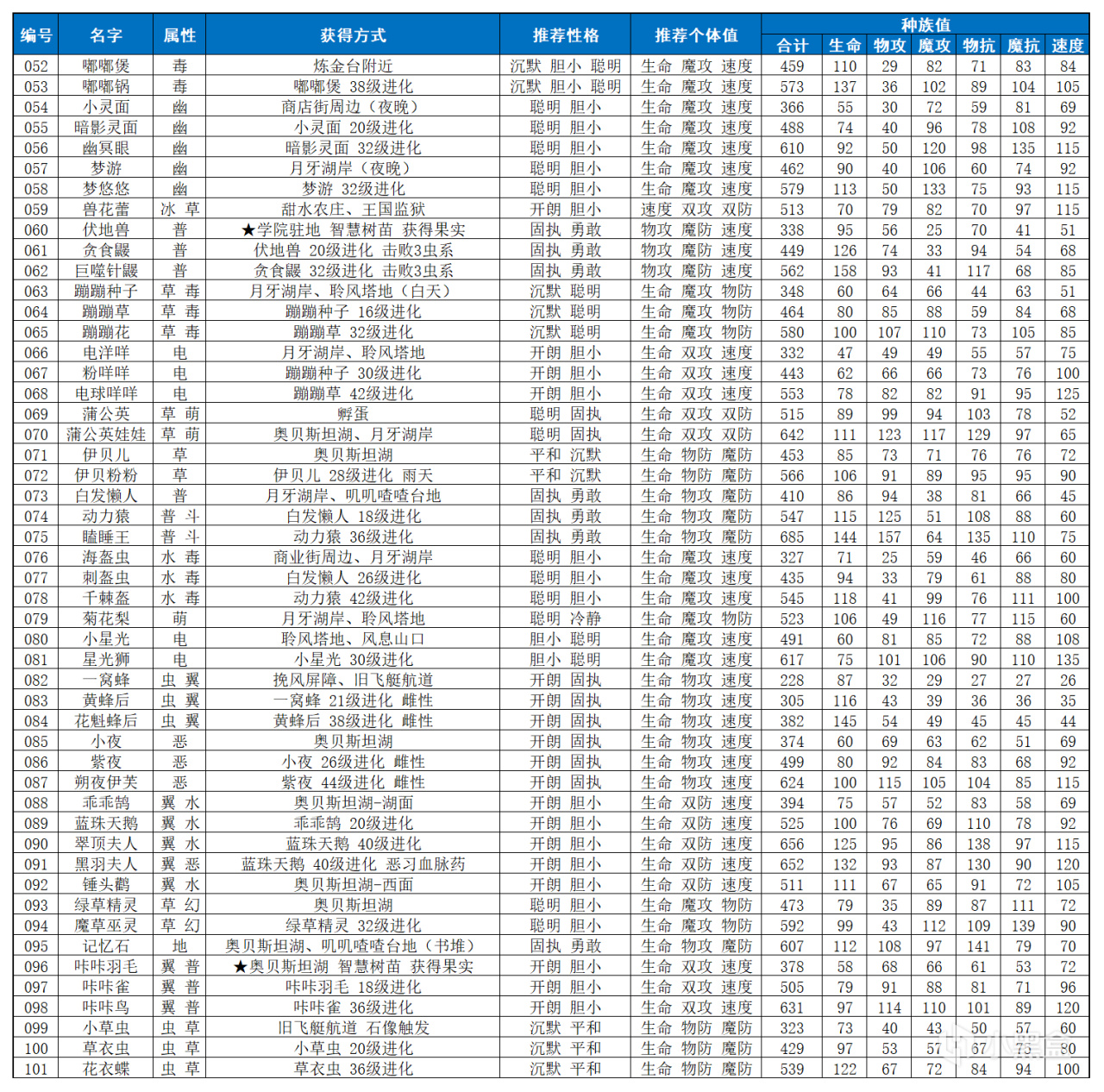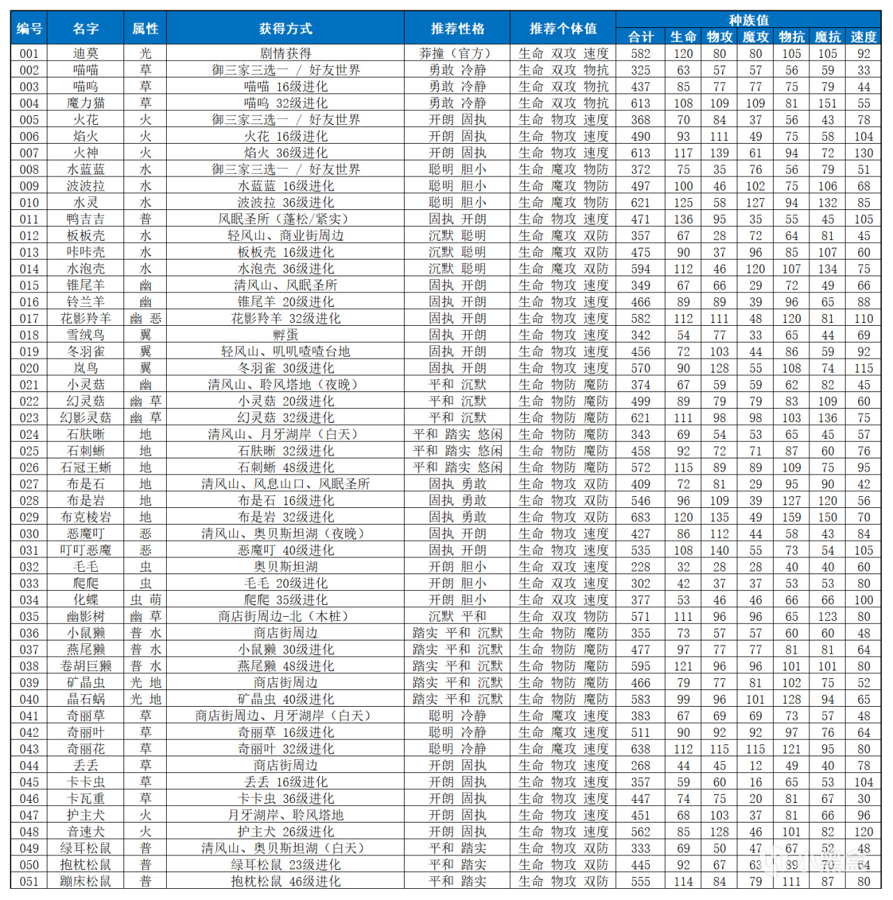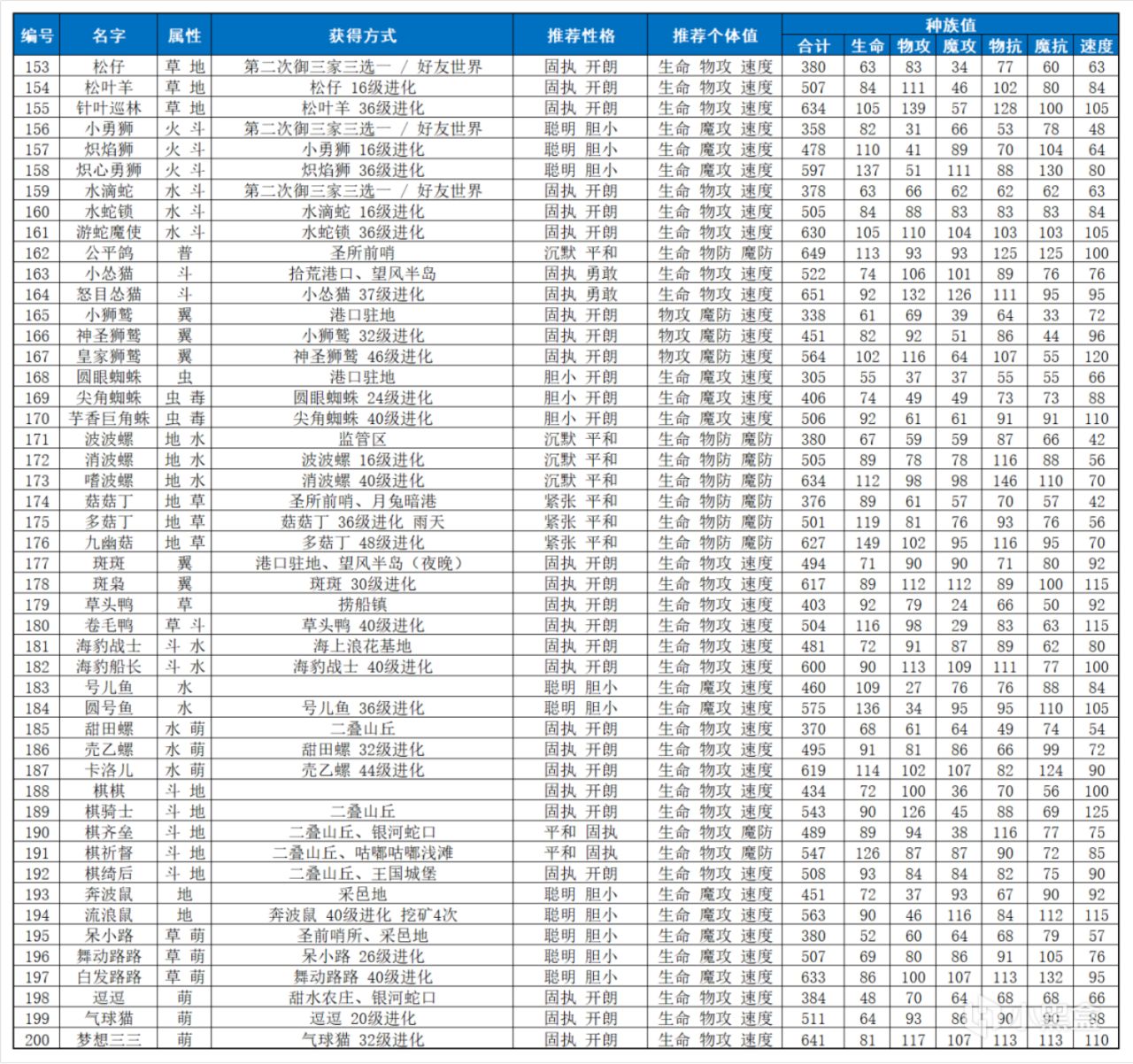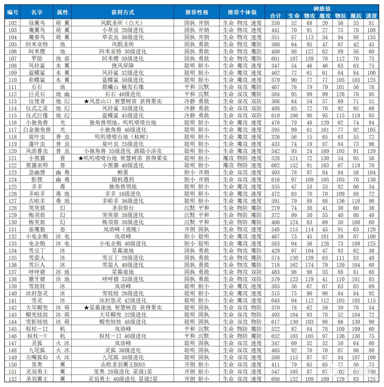 本表的推薦性格和個體值偏向pve 比如比較追求雙抗均衡(玩pvp我估計也不需要別人推薦了)