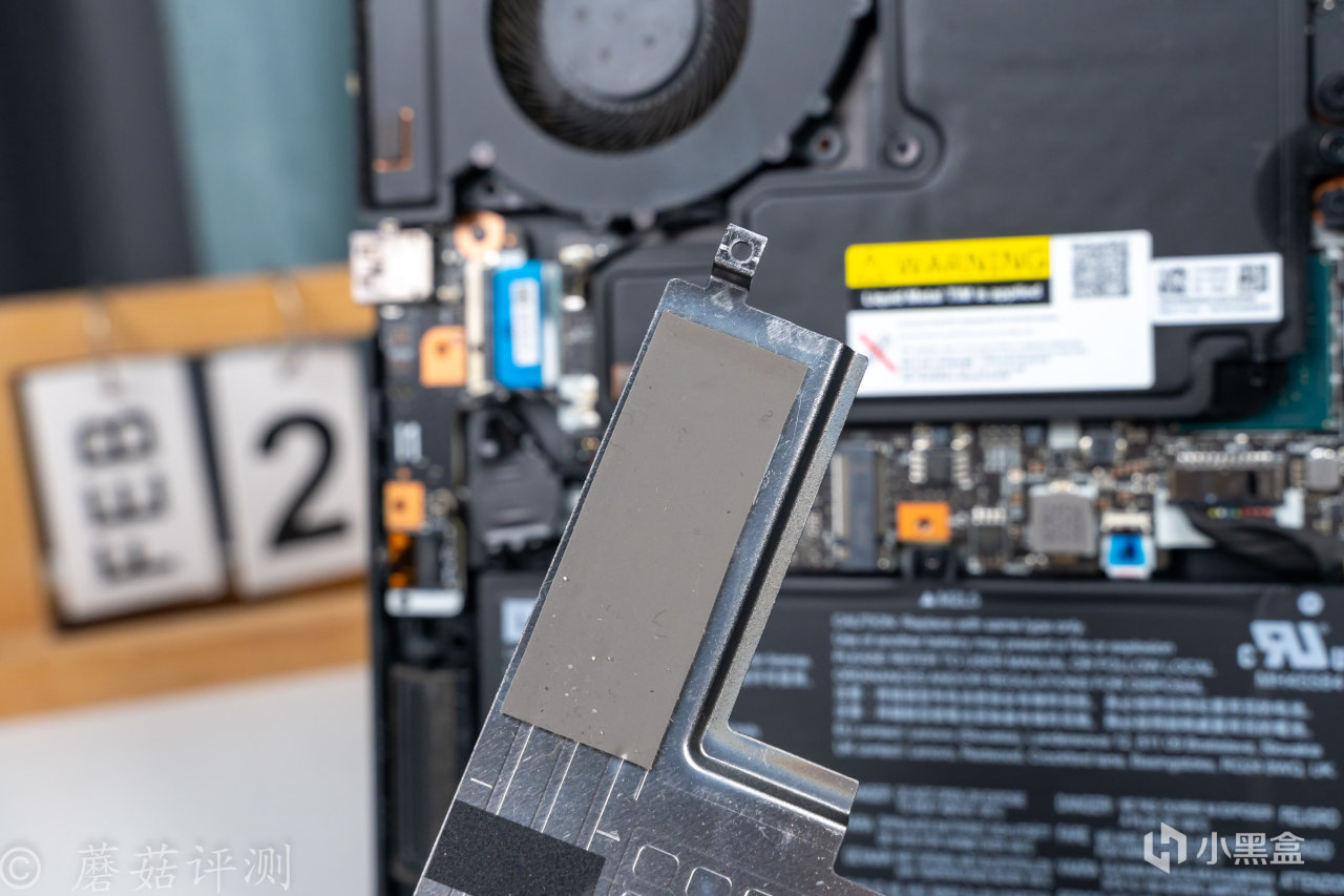 ▼標配的金屬件內側還貼有導熱墊,輔助M2固態硬盤散熱。