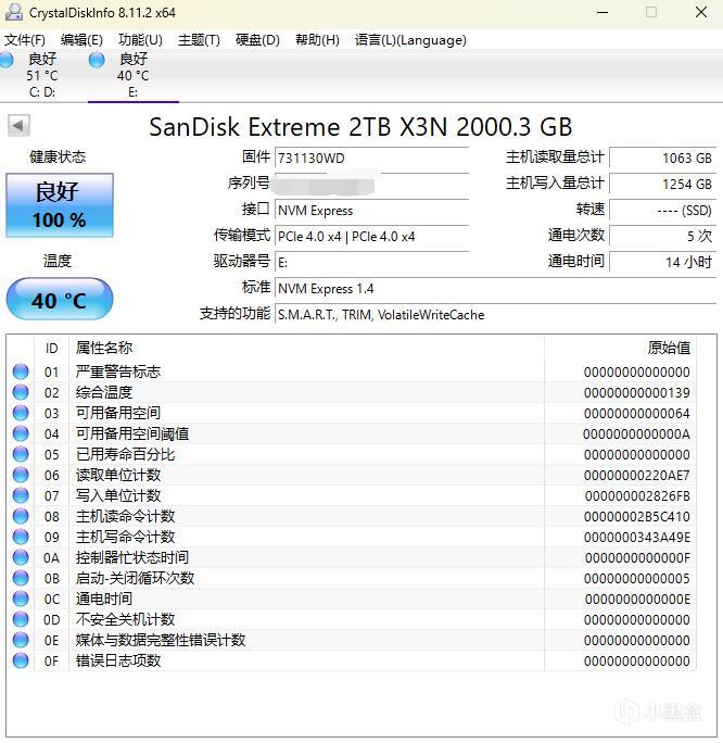 ▼最後簡單看下固態硬盤的參數,接口穩定在PCIe 4.0 x 4,通電次數4次。