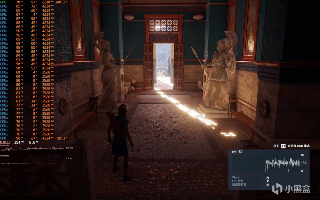 ▼走廊遊戲幀數在154幀左右,整體表現不錯。