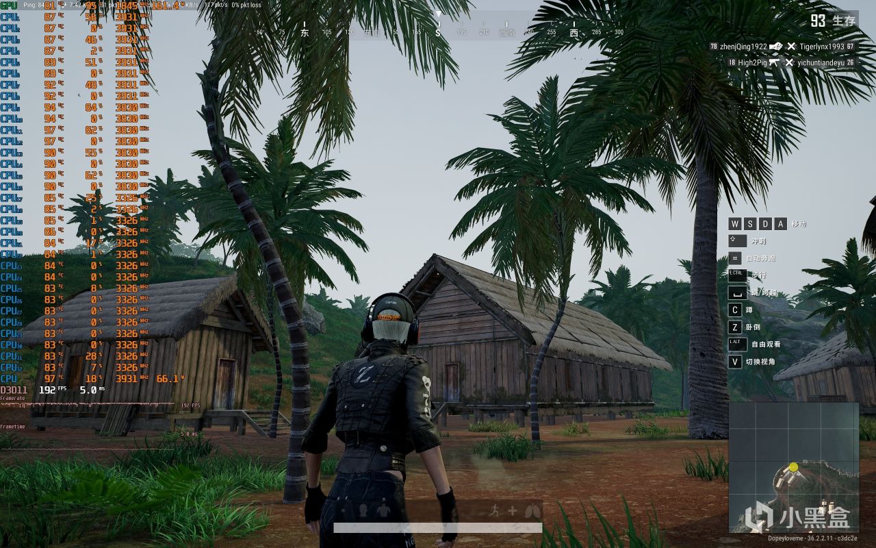 ▼絕地求生PUBG,2K分辨率,全高畫質,室外遊戲幀數在192幀左右。