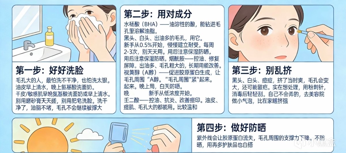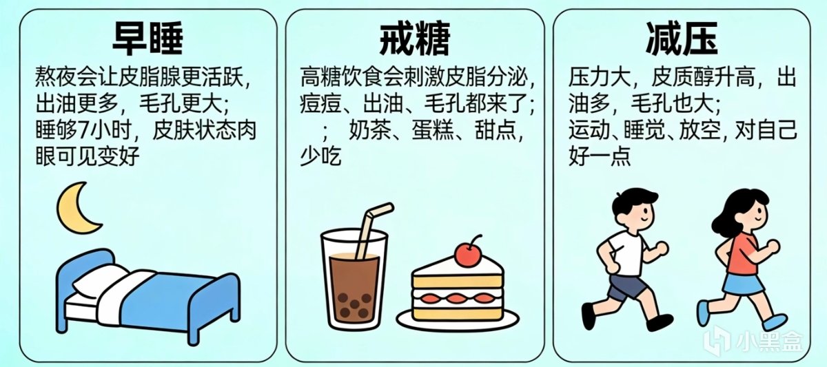 最后,做好三件事:清洁控油别硬挤,护肤用对成分,防晒必须到位。
