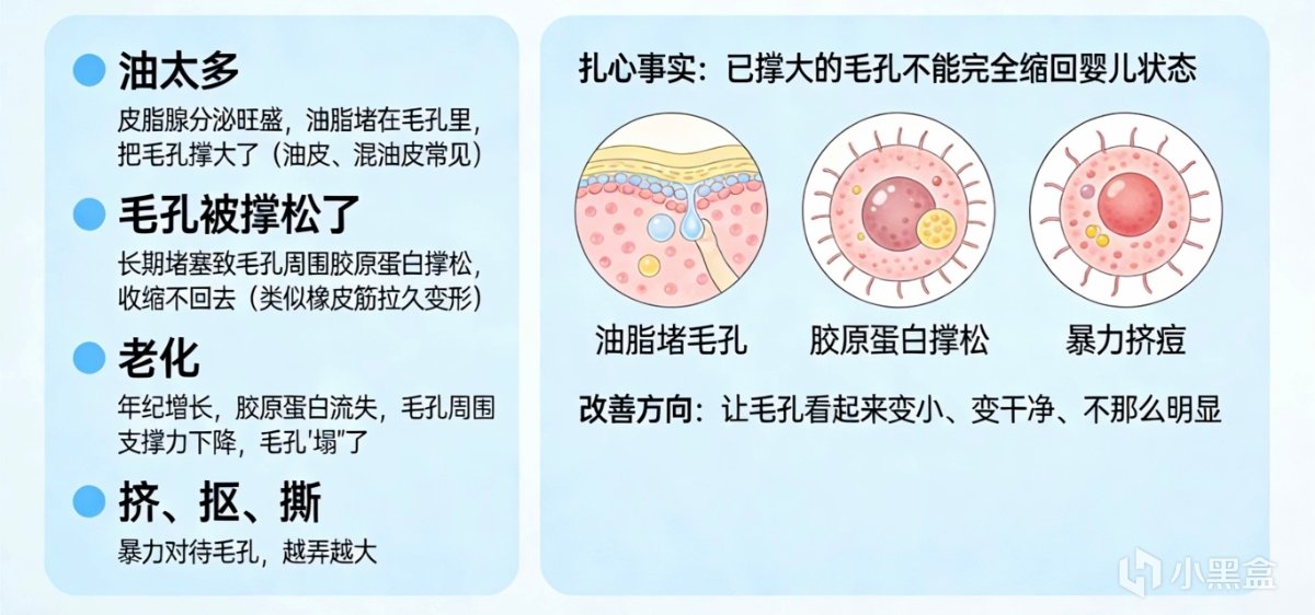暴力对待毛孔,越弄越大。 一个扎心的事实:已经撑大的毛孔,不能完全缩回婴儿般的样子。但可以改善——让它看起来变小、变干净、不那么明显。