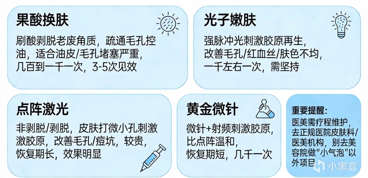 提醒:医美不是做一次就一劳永逸。需要疗程,需要维护。去正规医院皮肤科或医美机构,别去美容院做“小气泡”以外的项目。