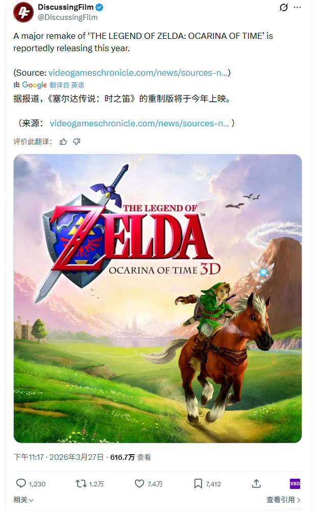 据Nate the Hate所称,这款对N64经典游戏《塞尔达传说 时之笛》的重大重制版,是为了纪念今年《#塞尔达传说#》系列诞生40周年而特别准备的。