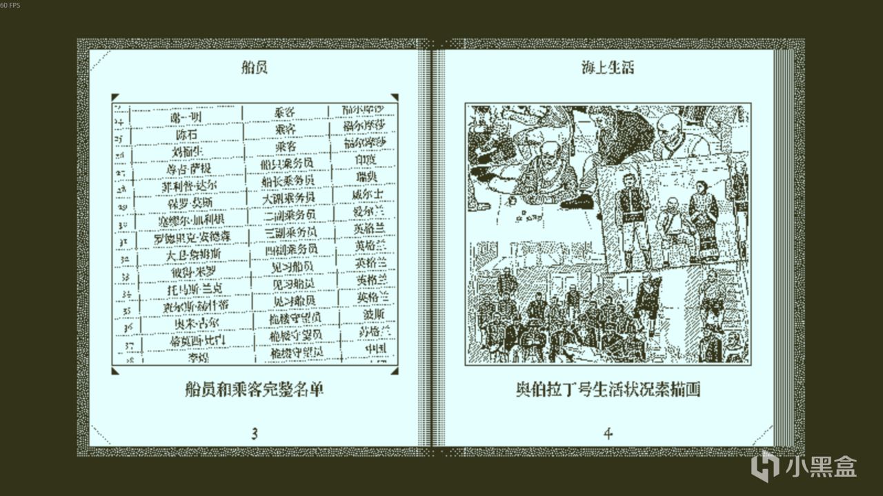 如图,我们只有船的航海路线,船体结构,船员名单,以及失踪的59个人的照片。当然,每当我们对一具尸体按下怀表,在见证了他们的死亡瞬间之后,我们的书便会为这具尸体画下死者的头像。而至于这具尸体叫什么名字,死因是什么,凶手是谁,则是交给我们的问题。