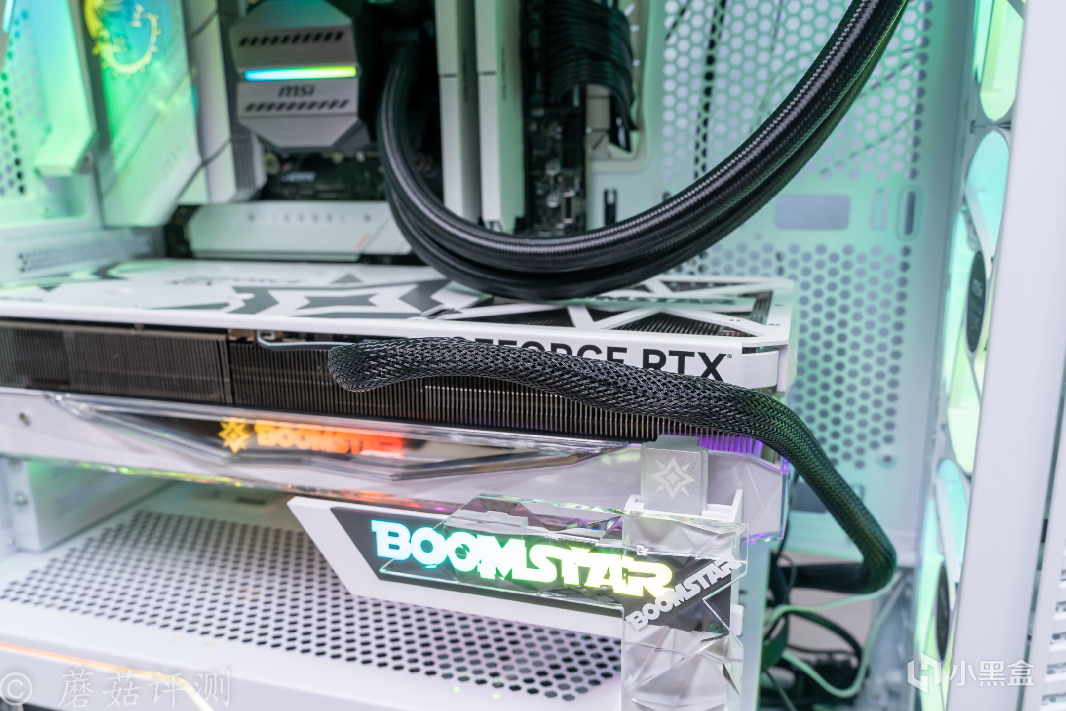 ▼影馳的這張RTX4080星耀OC顯卡採用16Pin供電接口,微星這款MPG A850GPCIE金牌全模組電源可以輕鬆的使用一根16Pin的供電線給顯卡供電,平時走線更加的簡單。