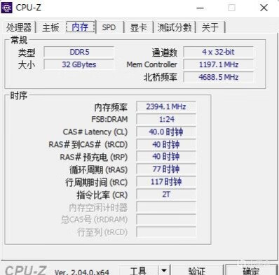 ▼默頻情況下,內存頻率在4800MHz,時序40-40-40-77。