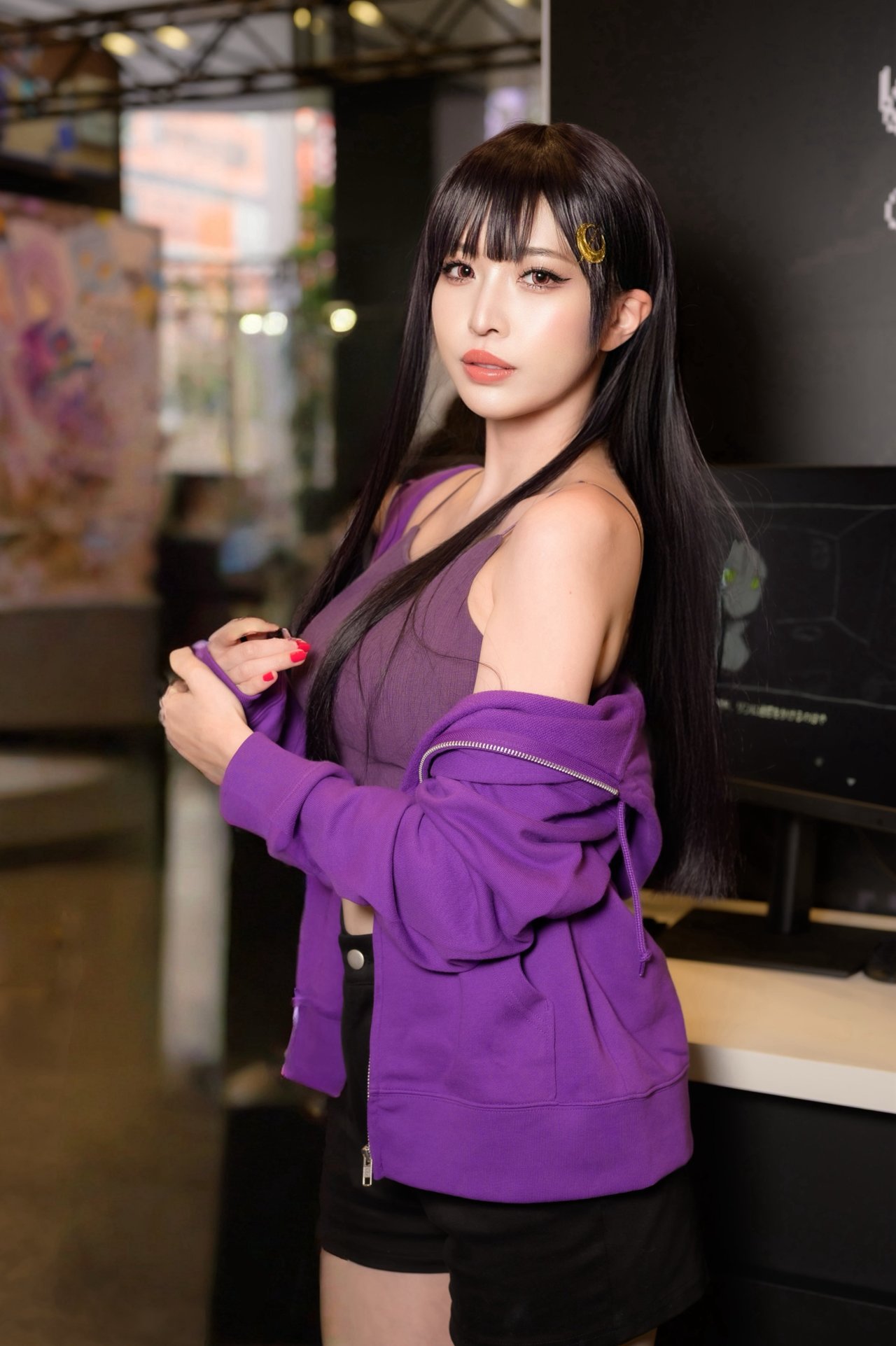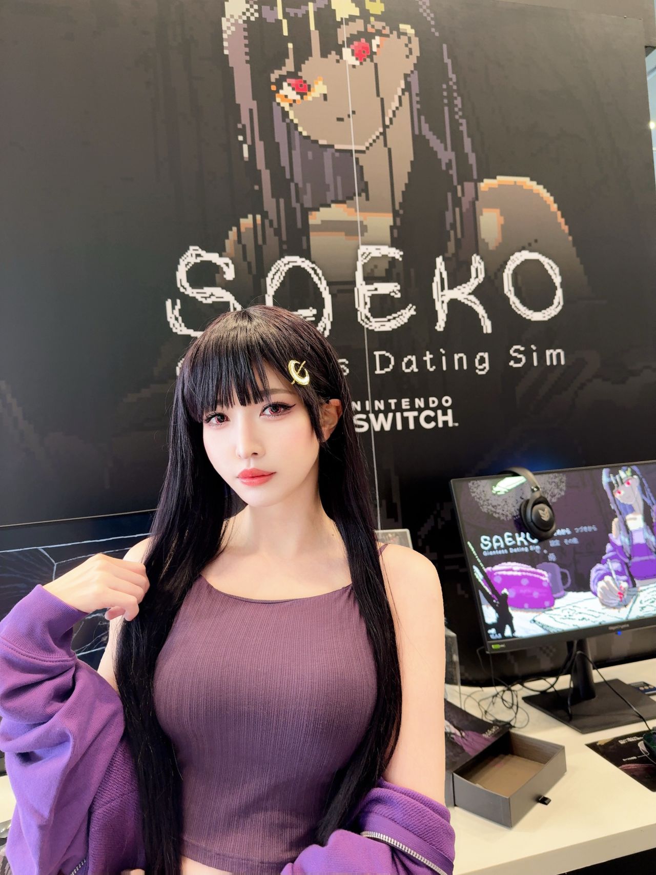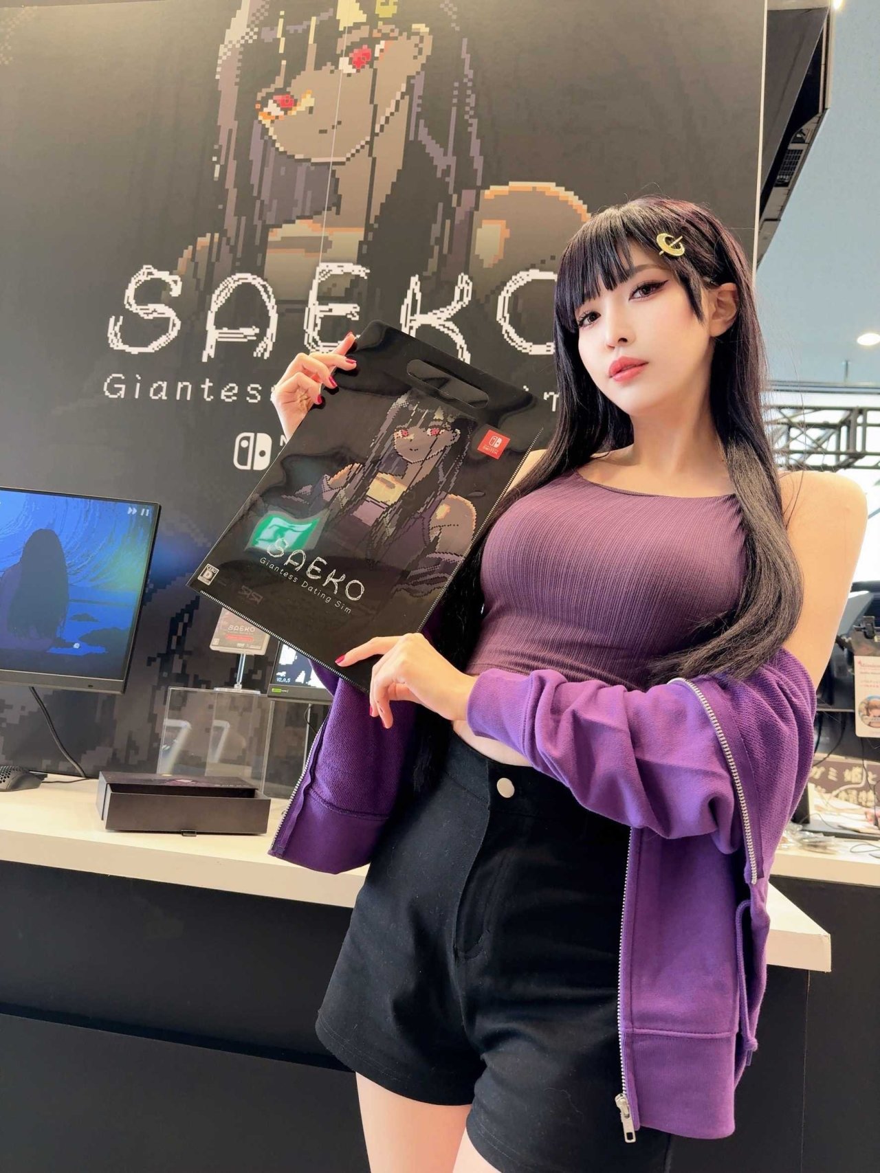 【こがらしりな】(@melo1224melo)作爲官方特邀COS參展扮演遊戲中的角色【冴子】(遊戲《SAEKO:女巨人戀愛模擬》展位)。