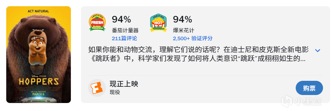爛番茄新鮮度高達 93%,爆米花指數 94%,被認證爲“新鮮”佳作。國內豆瓣評分也穩在 7.7分 左右,屬於近期口碑較好的動畫電影。
