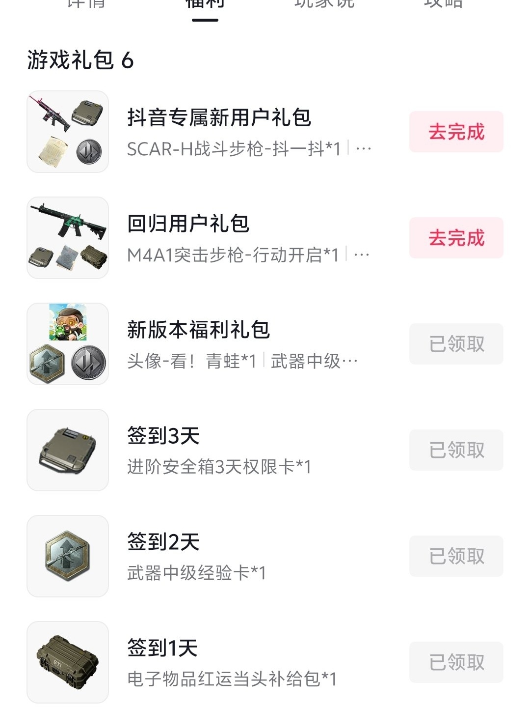 其余还可以获得物资的话就是taptap,抖音,微信小程序(原先qq后面微信也可以领了。)