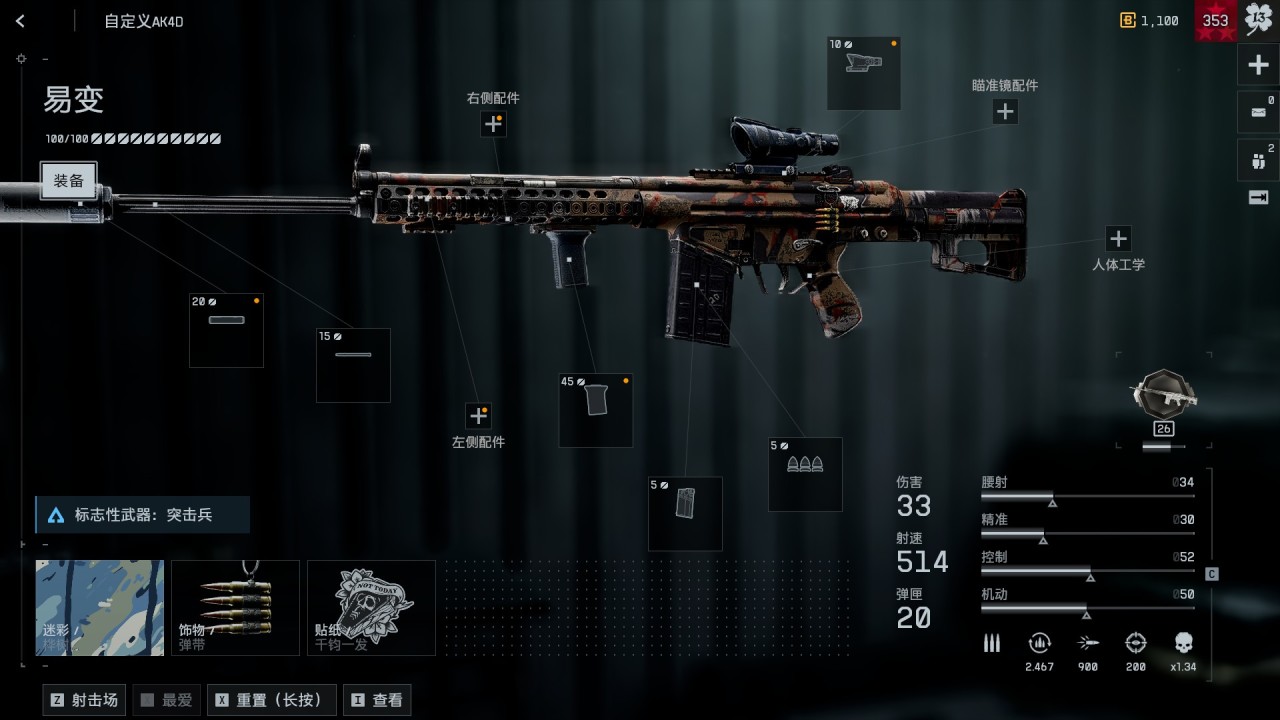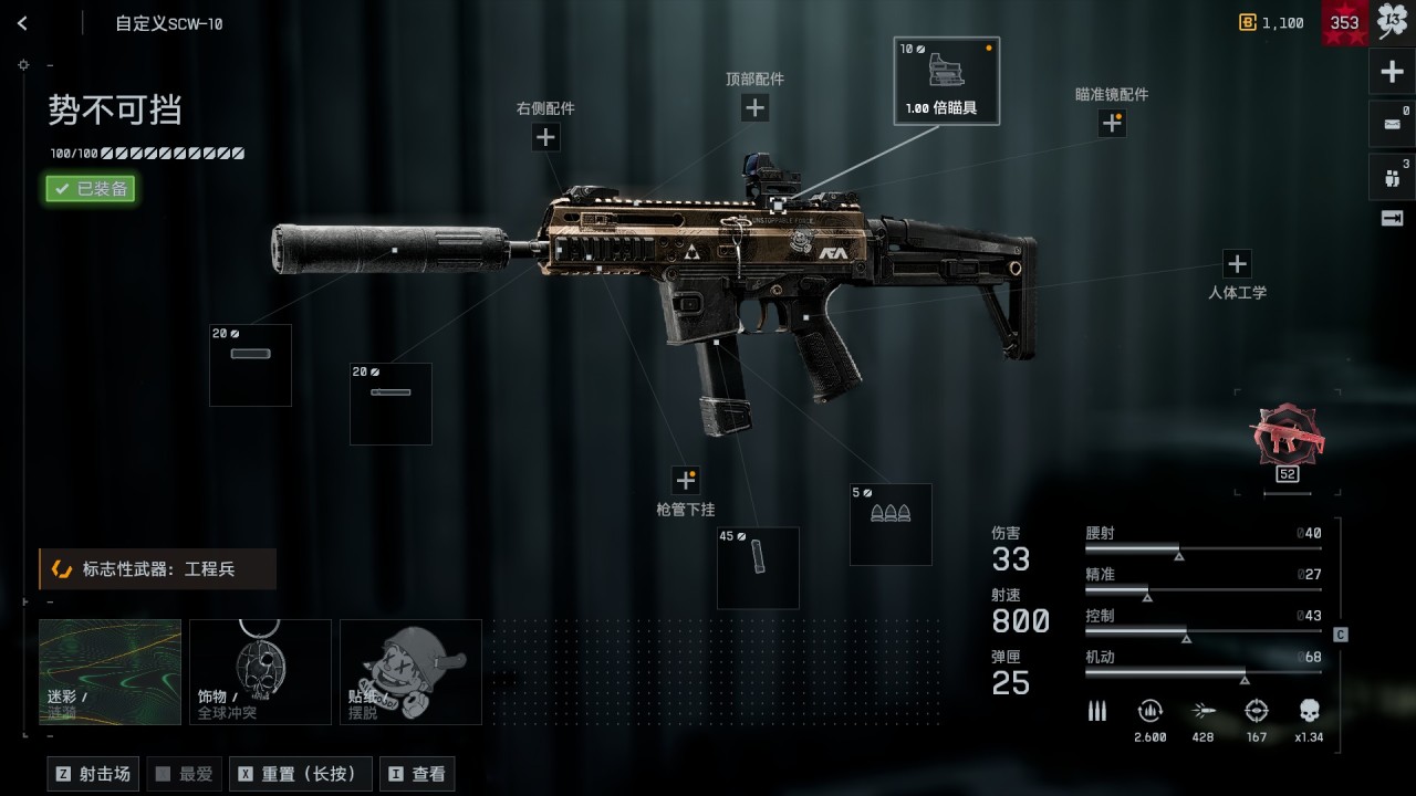在SCW肆虐S1的時候我就在一直推薦,1000多射速即使是第一次玩的小白也有幾乎一下按死跳出來的PRO哥,遠程能力略強於SCW,唯一缺點就是連殺能力弱,所以可以考慮換鎢心彈。