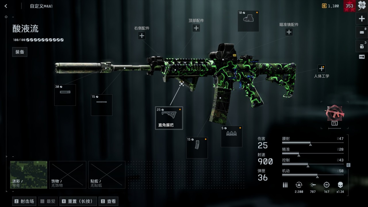 近戰消音器(30點) + 紅色激光(10點)來代替→綠色激光(10點)