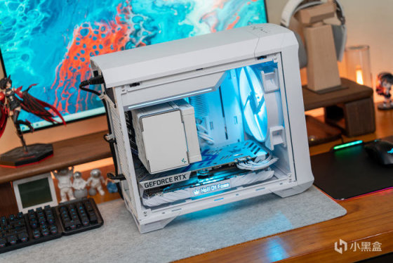 ROG STRIX B660-I主板,因为使用风冷所以主板基本很难看见,不过这个角度依然能管窥其中