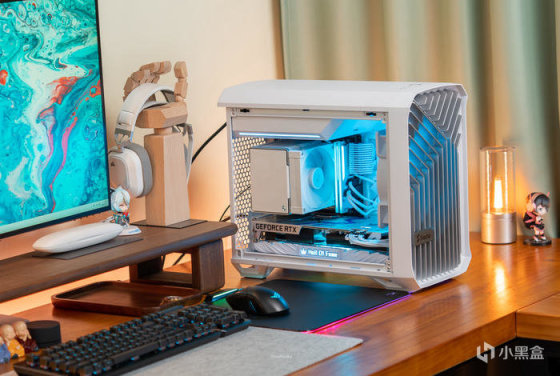 ITX的设计总是能取得更多人的喜欢,虽然对于ITX的尺寸能达到417mm x 222mm x374mm长宽高真的算是有点大了,不过也要看具体的设计,特别是其加入了目前算是非常强悍设计的电风扇级别的18CM的RGB风扇——18038的RGB Prisma,以及其纯白色调的机箱和上置ATX电源设计,整个设计都透露出,这台TORRENT NANO就是一台缩小版本的TORRENT,系列元素完全一致