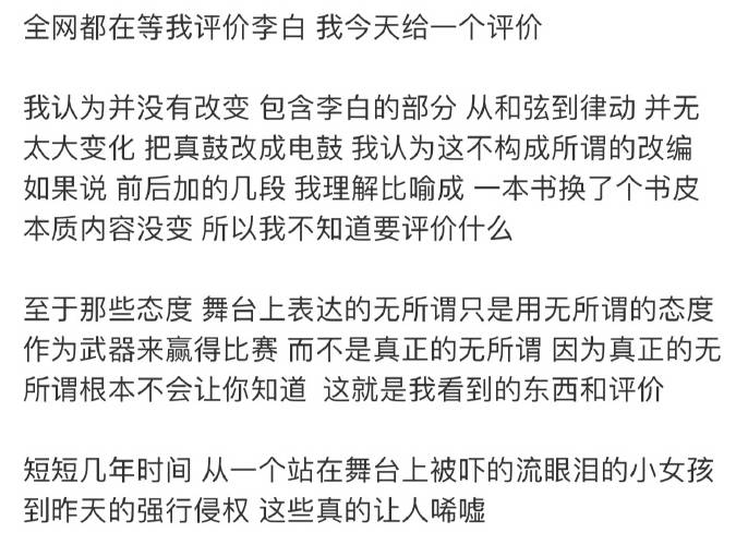 但後續的發展卻逐漸偏離軌道。單依純憑藉《歌手》舞臺改編《李白》爆火後,不僅沒有對原創者表達足夠的尊重,反而在商業演出中無視版權規則,這種行爲,在李榮浩看來,是對自己善意的消耗,更是對原創音樂的漠視。