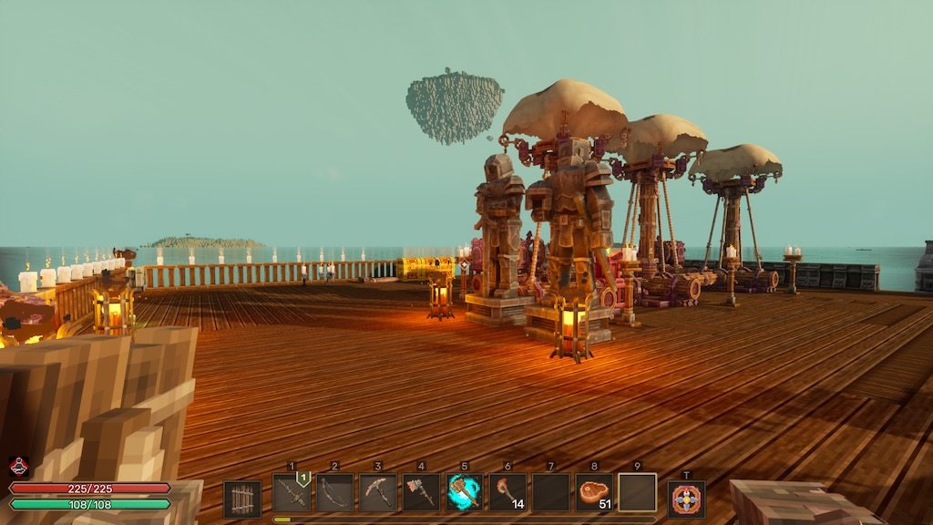 可能有许多小伙伴会以为,这个手搓起来的飞艇会是其他同类游戏里的那样就是个交通工具,但在《风屿奇航》这其实妥妥的就是个移动基地。我们可以在“飞艇核心”的能力范围内,建造出更大更强更帅的飞艇!然后把各种工具台、制作台、生活设备都弄到上面摆放在我们自己顺手的位置,一个可以四处飞行的“家”就是这么靠谱!对了,“飞艇核心”是可以使用各种材料对可建造范围、飞行速度和飞行高度进行升级来变得更加强大的。