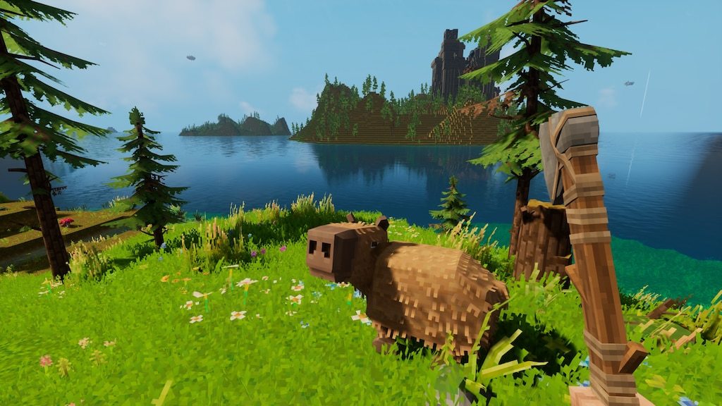 游戏的画风类似《我的世界》,就是无论是场景、物品、还是角色都是由一块一块的像素块组成的,但还真别说,玩起来还是格外带劲!特别是优化这块,甭管世界一眼望不到边的大,但完全不需要担忧卡顿和跳出之类的,这应该是这类像素块游戏最大的优势了!