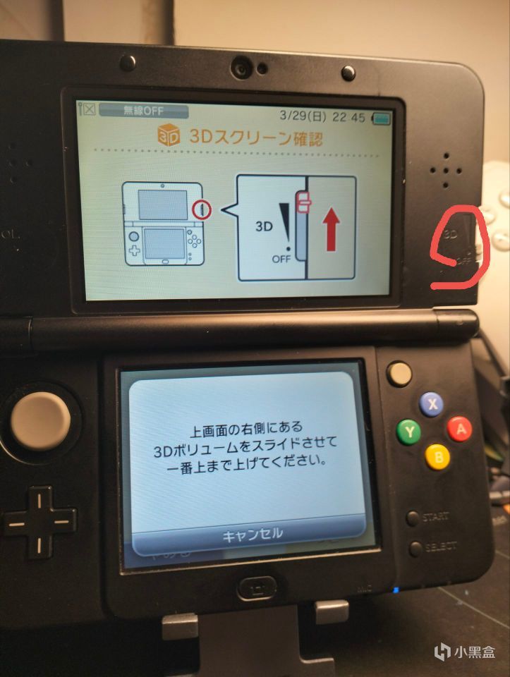 3d功能的測試要在“其他設定”中的第三頁選擇”3d機能確認“,並滑動下圖中紅圈處的3d實體開關來觀察屏幕上將要給出的3d影像。