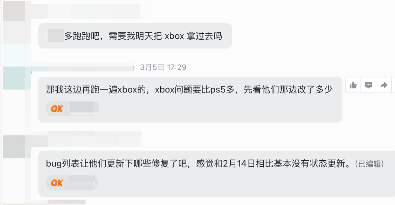 按約定,主機端的研發、測試、移植全流程均由主機開發團隊負責,我們作爲授權方負責最終驗收。但年後我們收到的版本仍然多次存在很多問題。考慮到大家的遊玩體驗,我們不得不介入,配合做了大量測試和反饋工作。