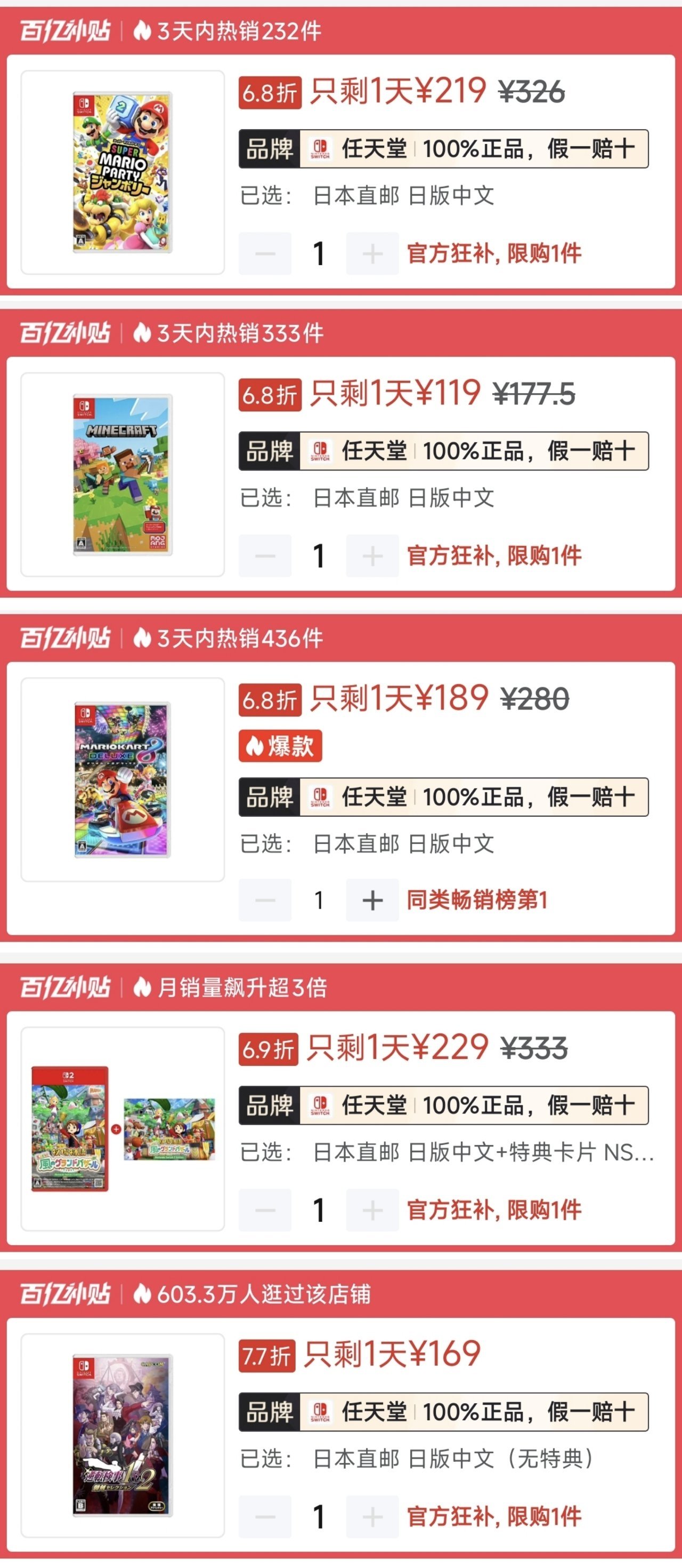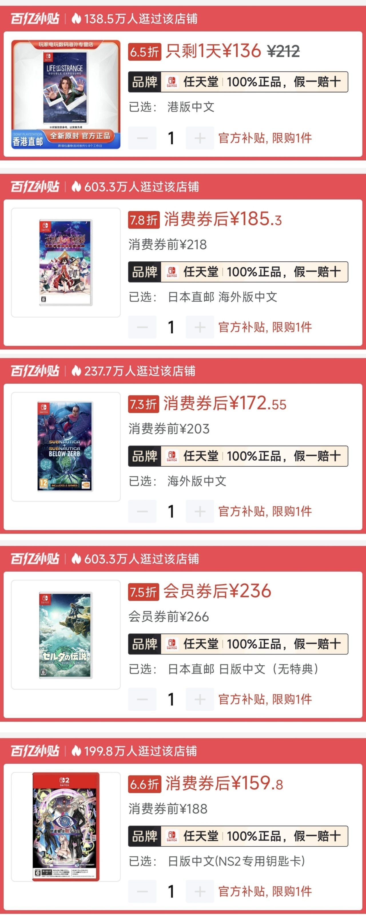 1.《塞尔达传说王国之泪》ns1版🇯🇵236(-30)|清朝史低199