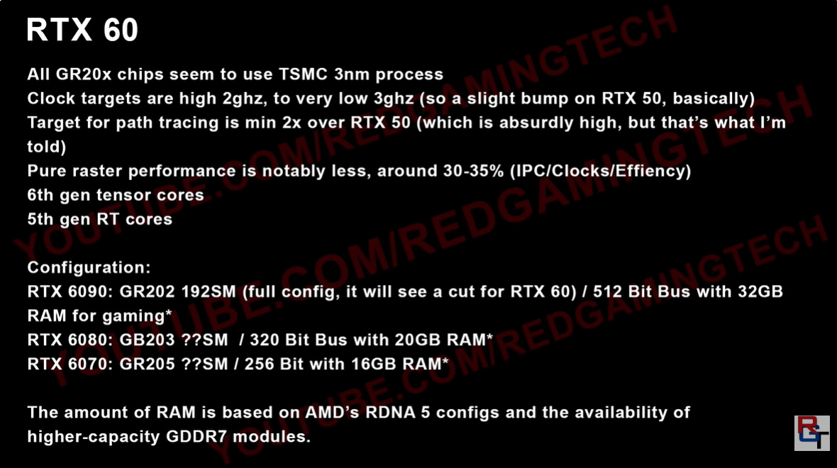 GeForce RTX 6070將搭載GR205芯片,配備16GB GDDR7顯存與256位內存總線,顯存容量較RTX 5070的12GB實現升級。全系列顯卡均採用臺積電相同製程工藝。