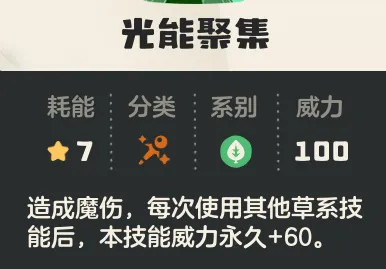 玩法就是【藤绞】一直偷伤害,见缝插针用【丰饶】,最终给【光能聚集】叠伤害。