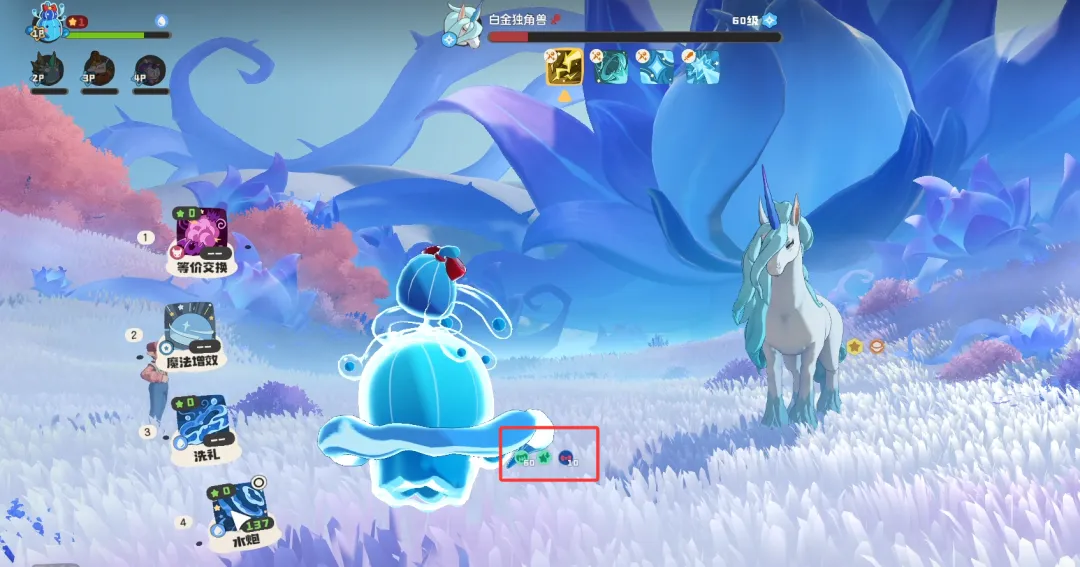 ①独角兽用没威胁的两个技能,我们用【水炮】对轰。