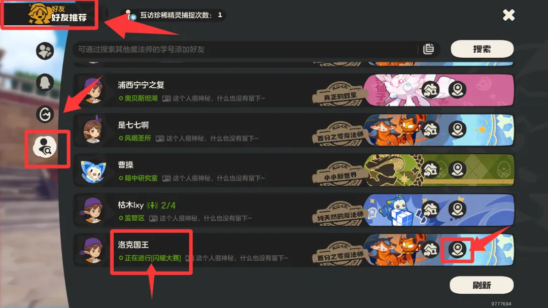 还有可以从好友推荐里,找到任何进行【闪耀大赛】的,直接传送过去观战也行,打完可以加他一个好友。