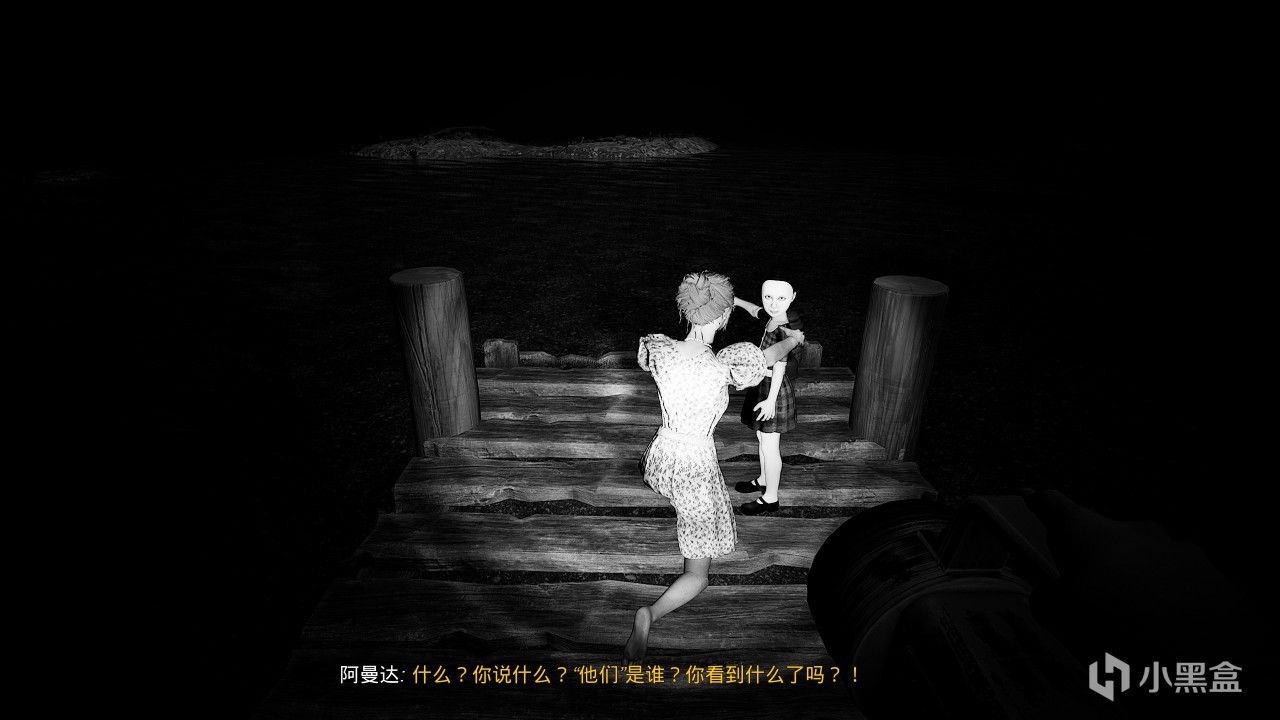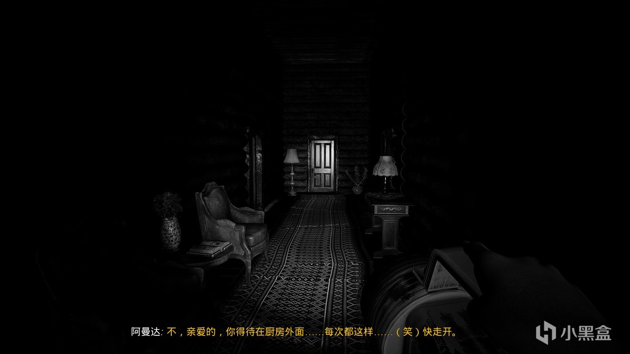 但我們又能聽到妻子的呼救聲,一邊說恐怖的“它們”,一遍求救,甚至在第一章末尾還會見到另一個形態的妻子阿曼達,她似乎有點神志不清,雙手沾滿紅色的血漬,毫無生氣的表情好像已經不像人類了,在主角昏倒前一秒還看到有UFO飛過來,加劇了這種驚悚感。