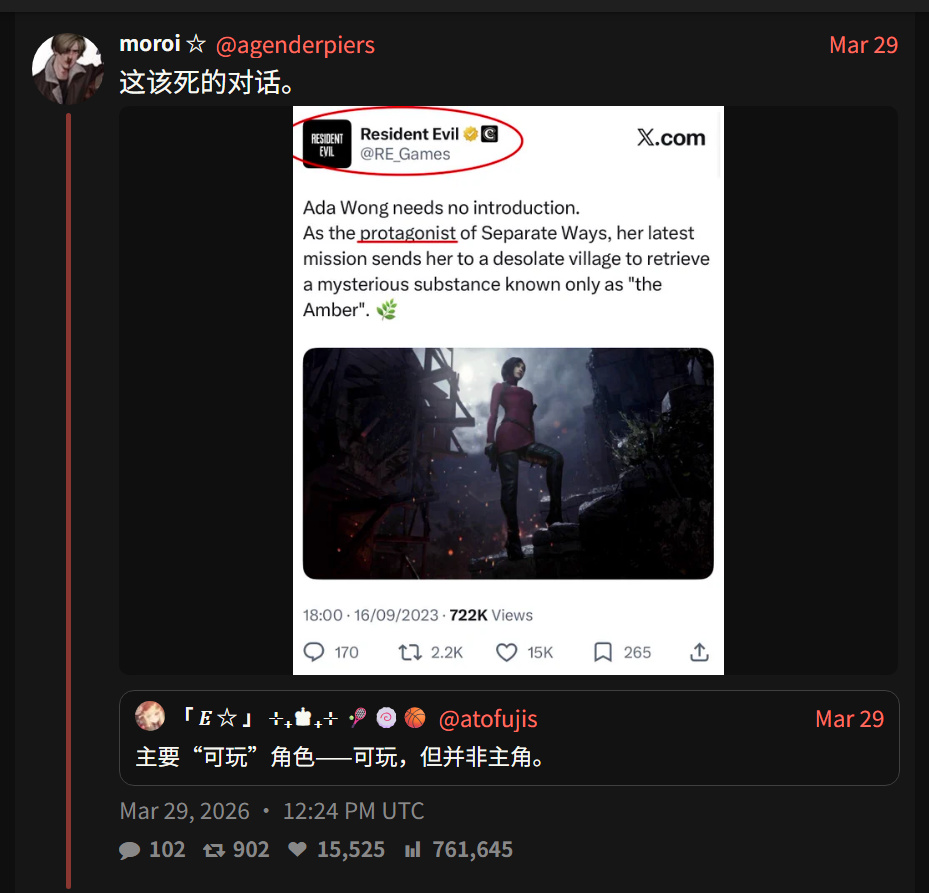 誰能想到,一張生化危機9安眠曲的DLC宣傳圖,引發網友長達數日,關於艾達到底是不是生化危機系列的主角爭議?