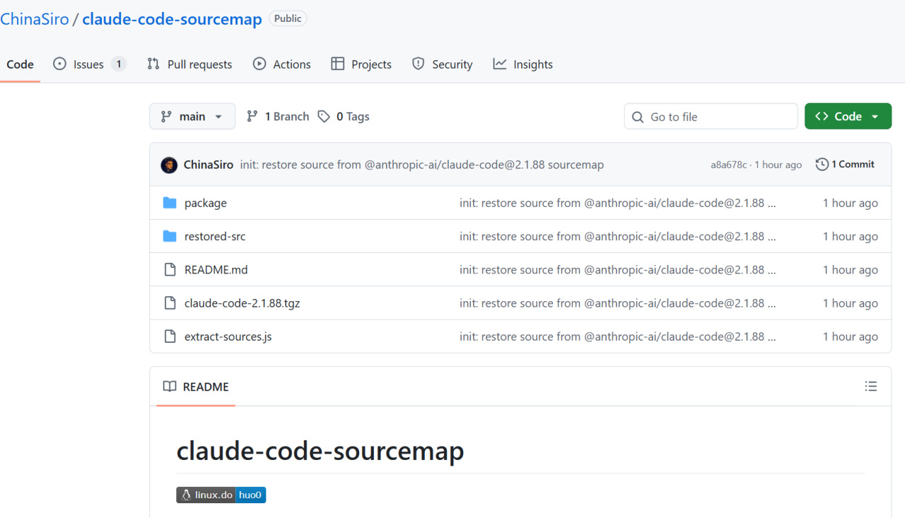 一个小时前,GitHub上出现了一个名为 claude-code-sourcemap 的非官方仓库,该仓库声称还原了 Anthropic 公司 Claude Code 2.1.88 版本的完整 TypeScript 源码。