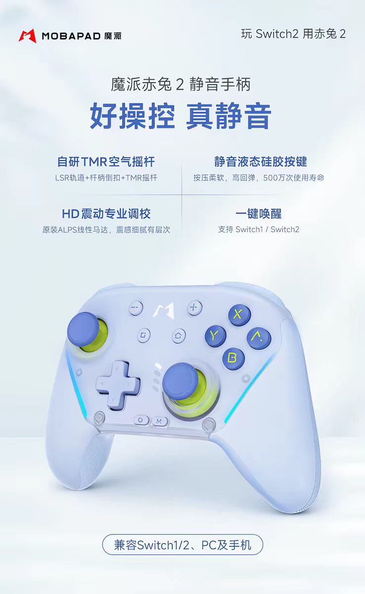 如果你沒有靜音需求,並且喜歡機械微動手感,那麼這款手柄絕對是你的ns2pro最佳平替手柄,媲美原版手柄的HD震動、ns1、2一鍵喚醒功能以及nfc功能和六軸陀螺儀功能,手感與實際上手體驗都近乎完美,魔派的赤兔系列還是太權威了。