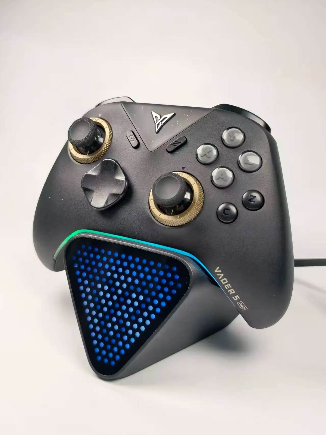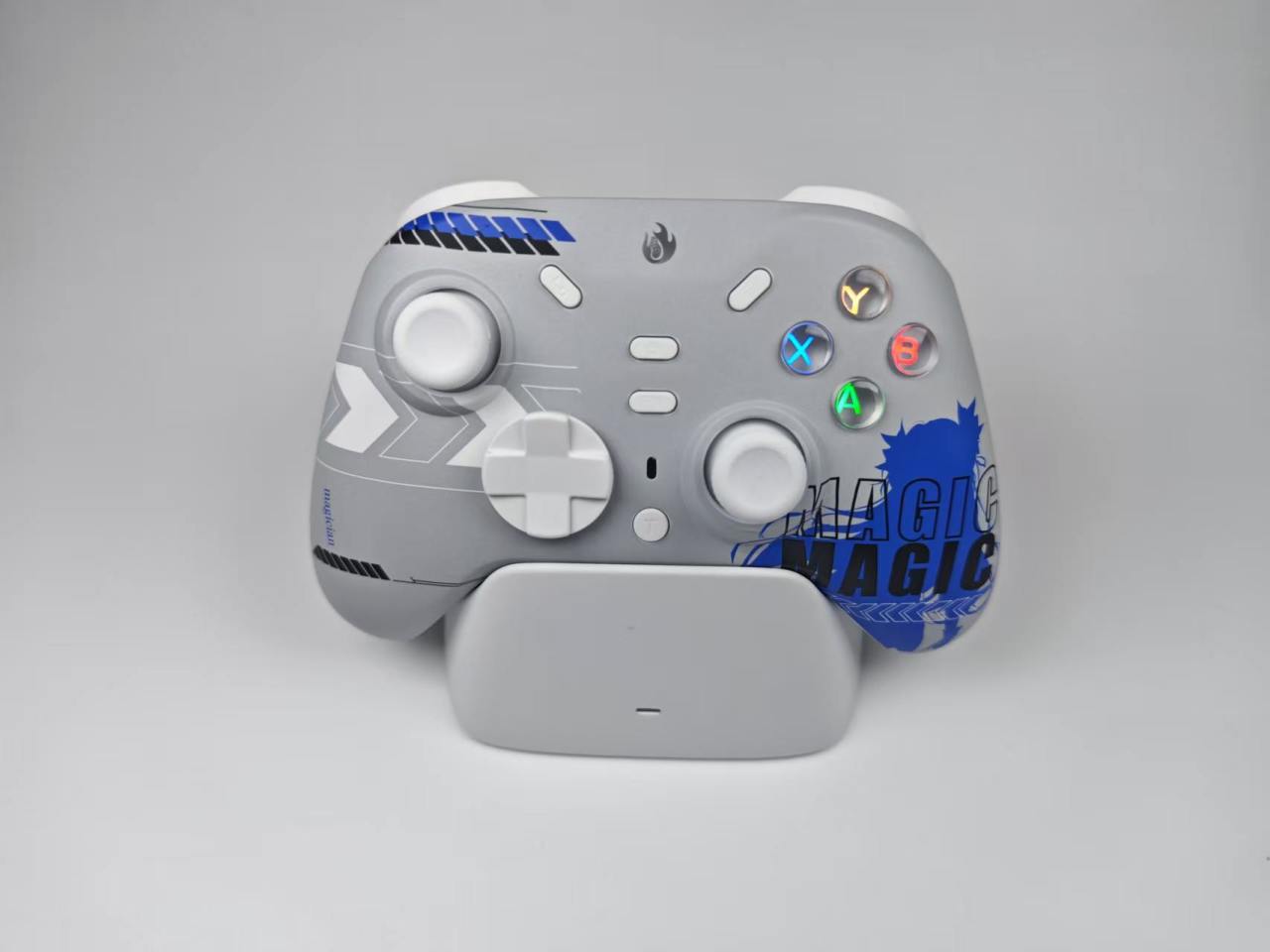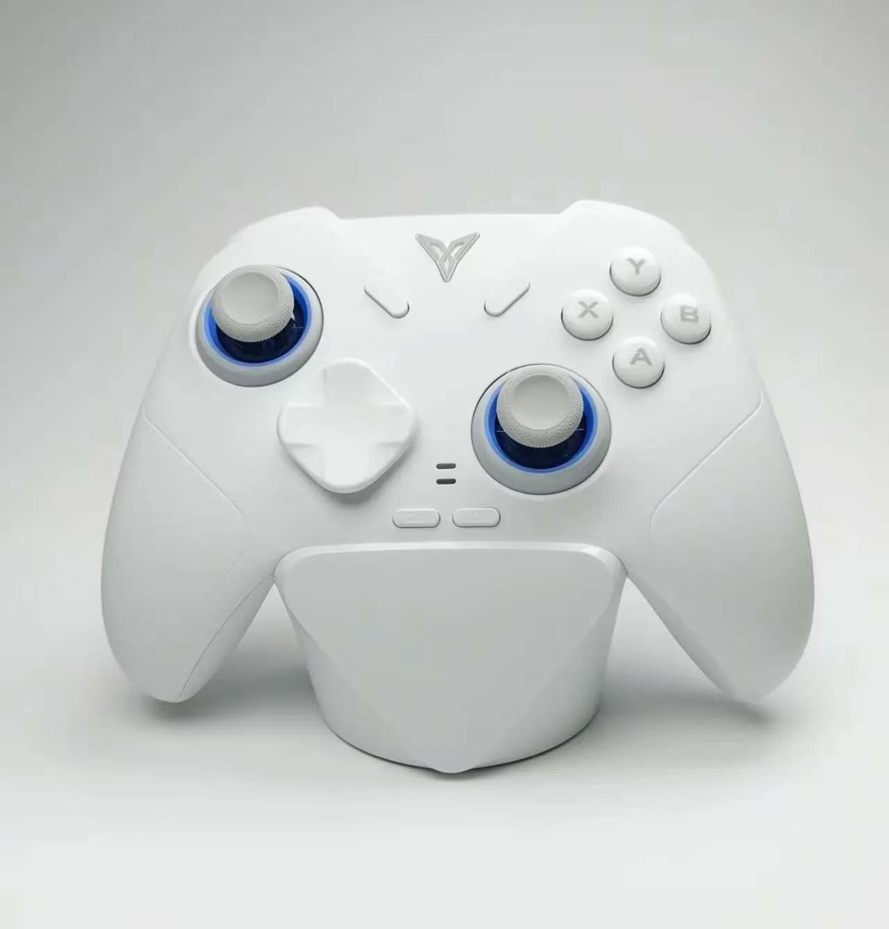 這款手柄算是所有手柄廠商當中最便宜的旗艦級手柄了,雖說價格便宜,但是配置卻一點都不含糊,單是TMR搖桿和附贈的充電底座都夠回本了。並且這款手柄的充電底座與手柄給人一種渾然天成的美感,簡約的風格搭配上風火輪RGB燈效,顏值直接拉滿了,相較於市面上常見的類Xbox模具,八位堂的這款自由模具更適合小手玩家使用,全網最尊重小手玩家的廠商。